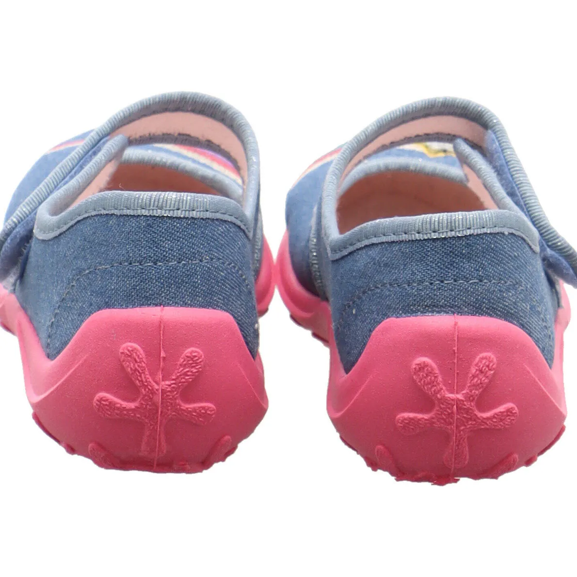 Dieser Kinder Klett Hausschuh Boogy von Fischer Markenschuh mit der tollen Sternschnuppen Stickerei auf dem Blatt, ist perfekt für kleine Mädchen, die zu Hause oder im Kindergarten toben und herum tollen wollen. Dabei ist die eine Hälfte der Sternschnuppe auf dem rechten Schuh und die andere Hälfte auf dem linken, das hilft gleichzeitig dem Kind, den Schuh richtig anzuziehen.