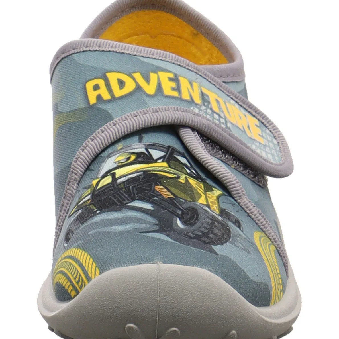 Dieser Kinder Klett Hausschuh Boogy von Fischer Markenschuh ist perfekt für Jungen die zu Hause, im Kindergarten oder der Schule toben und herum tollen wollen.