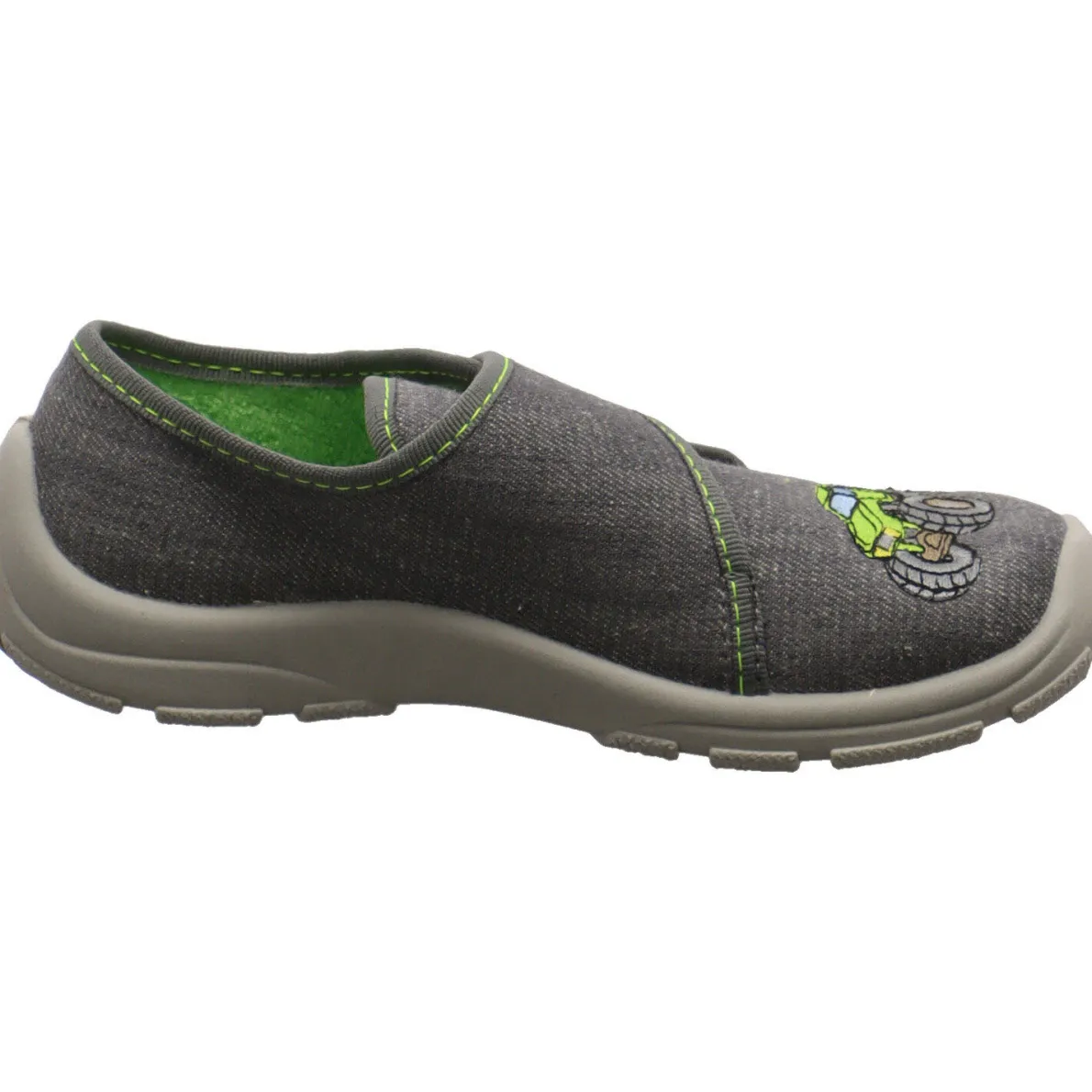 Dieser Kinder Klett Hausschuh von Fischer für Jungen, mit dem Monster Truck als Stickerei auf dem Blatt, ist perfekt für kleine Abenteurer, die zu Hause, im Kindergarten oder der Schule toben und herum tollen wollen.