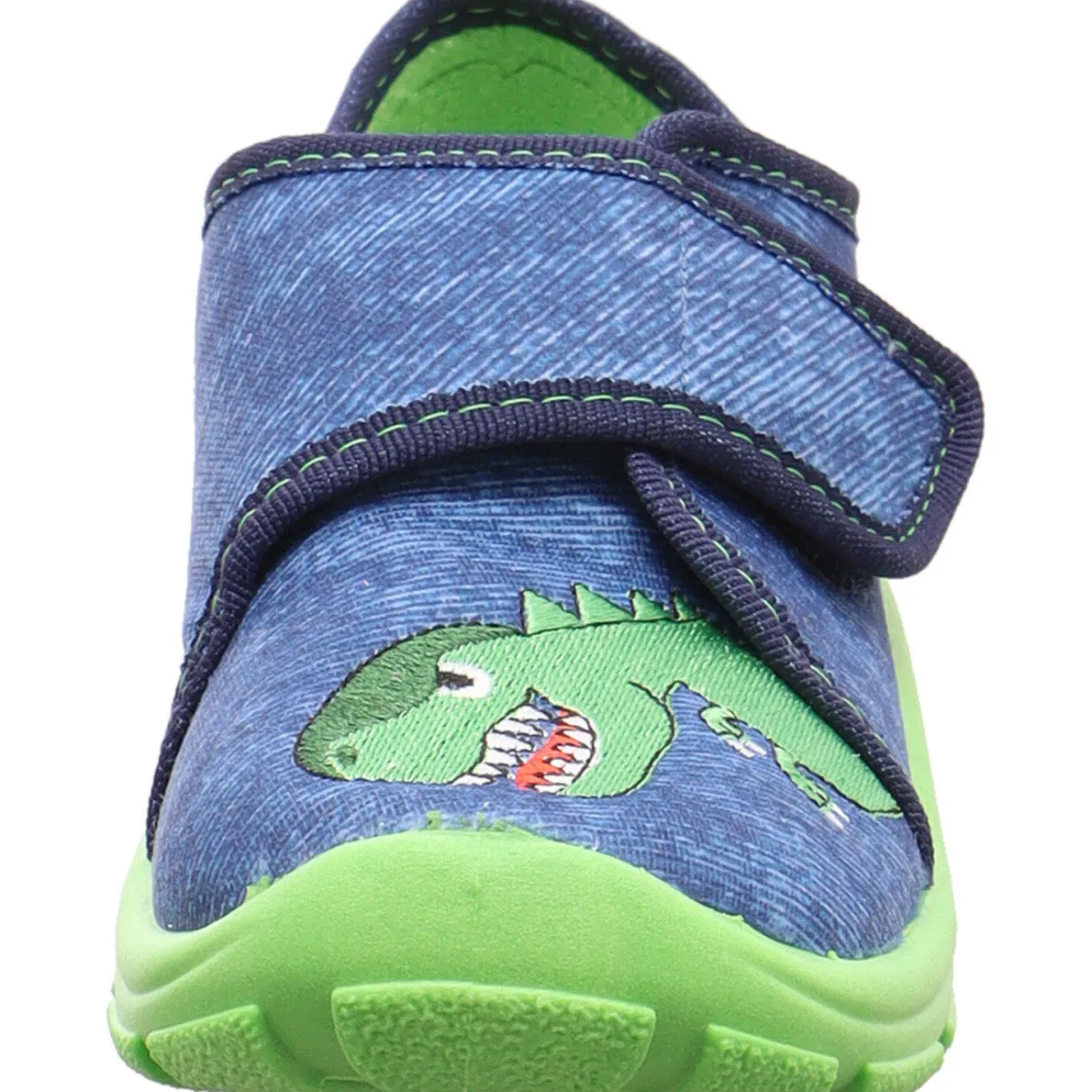 Dieser Kinder Klett Hausschuh Danny von Fischer für Jungen, mit dem T-Rex als Stickerei auf dem Blatt, ist perfekt für kleine Abenteurer, die zu Hause, im Kindergarten oder der Schule toben und herum tollen wollen.