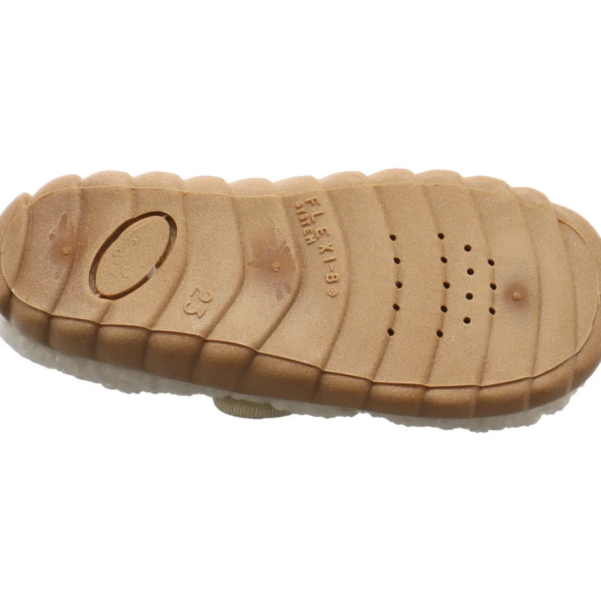 Besonders schön ist das flauschige Teddy Obermaterial aus Textil in Beige. Das Innenfutter aus Frottee sorgt für ein angenehmes Tragegefühl. Er lässt sich durch den seitlichen Klettverschluss leicht an- und ausziehen, was beim Spielen oft von Vorteil ist.