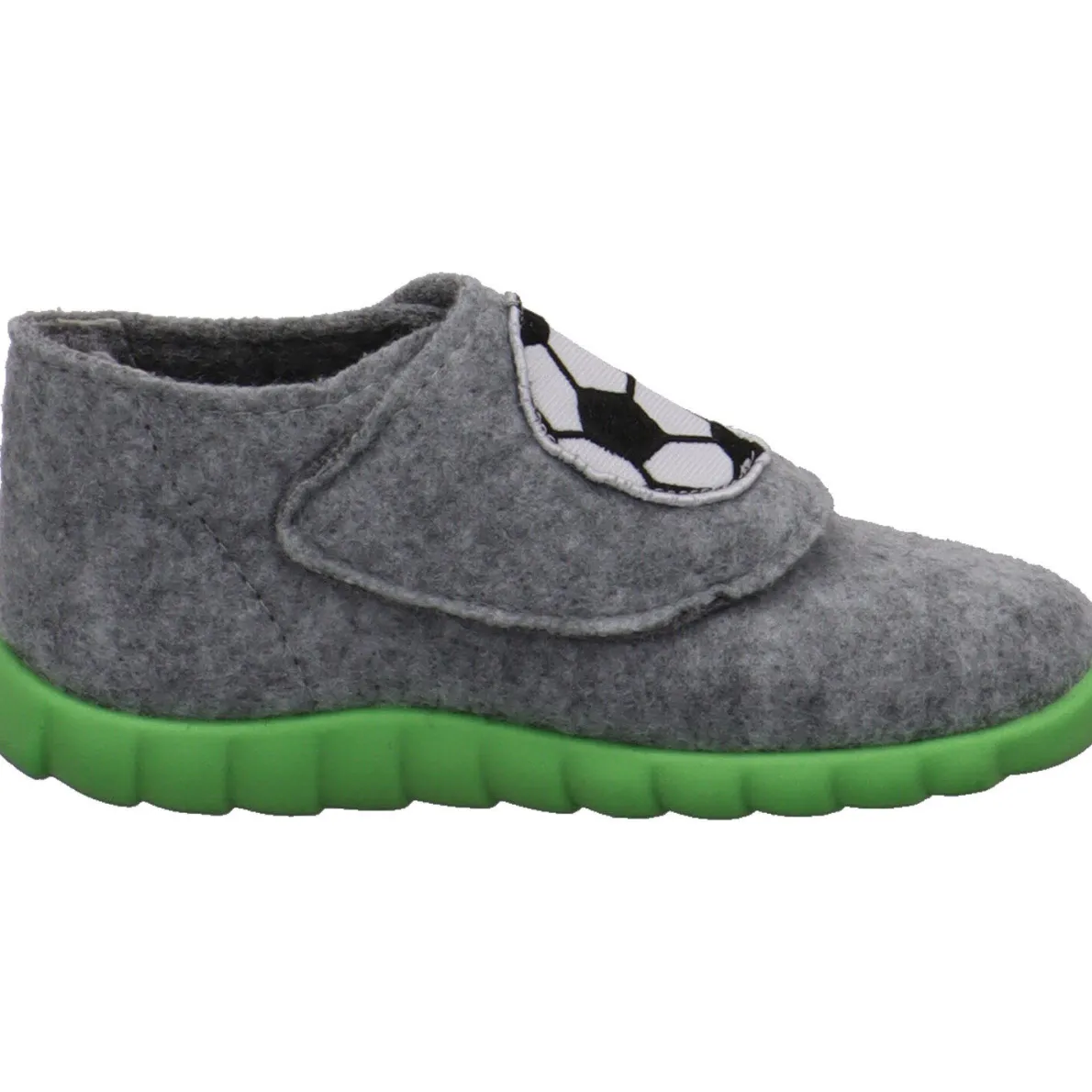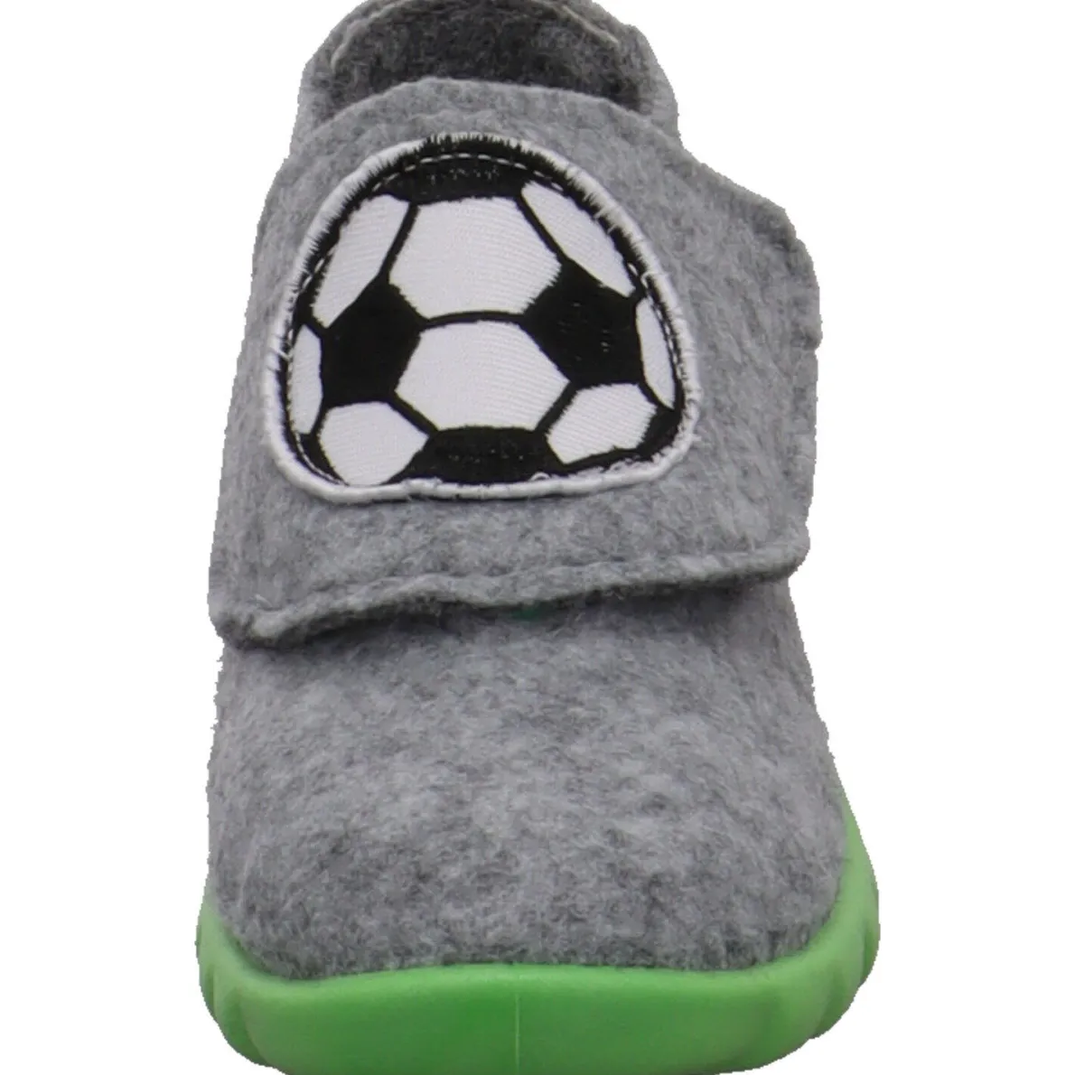 Der Kinder Hausschuh Flexi von Fischer Markenschuh ist aus Filz und begeistert jeden Jungen mit der Fußball Applikation und der Aufmachung in Grau.