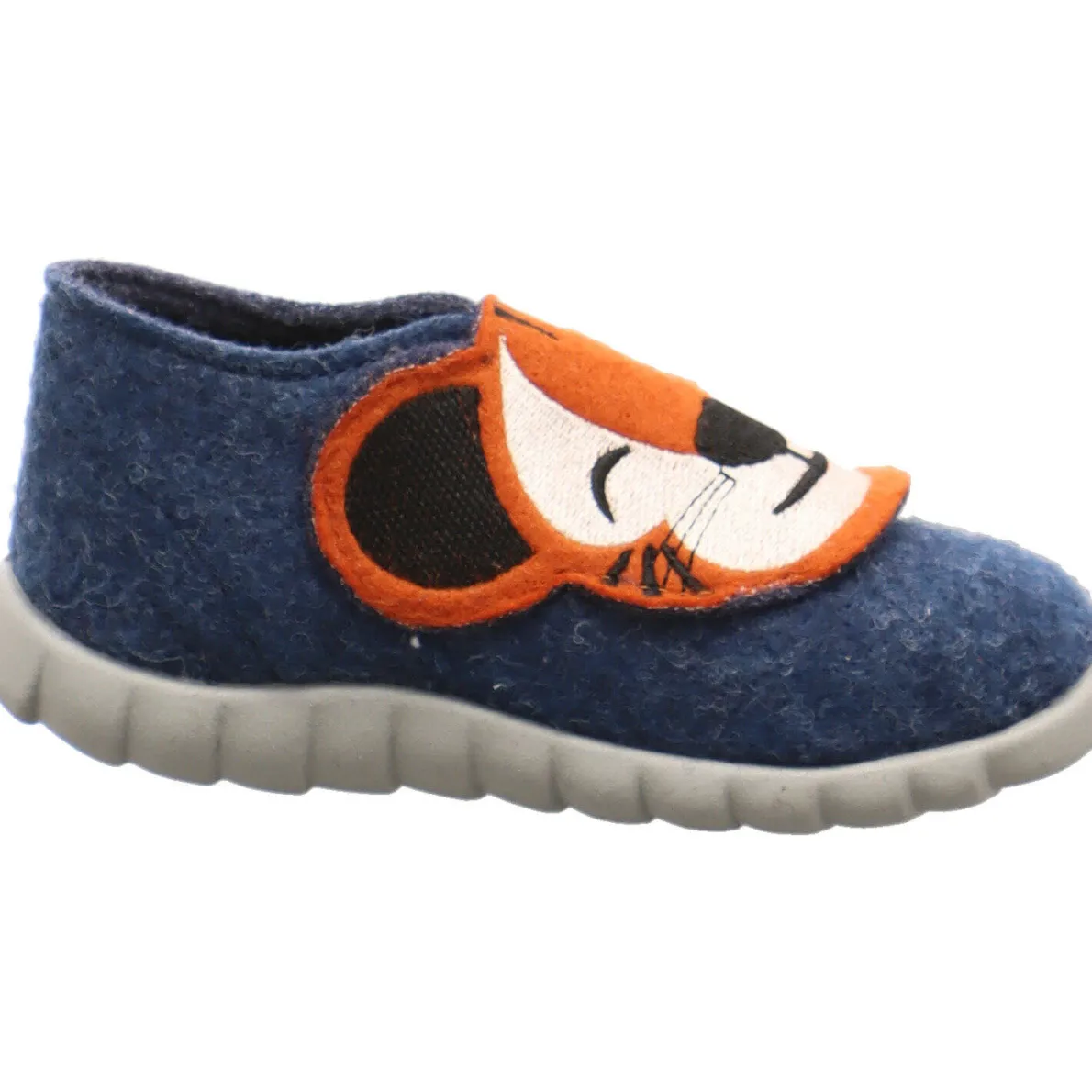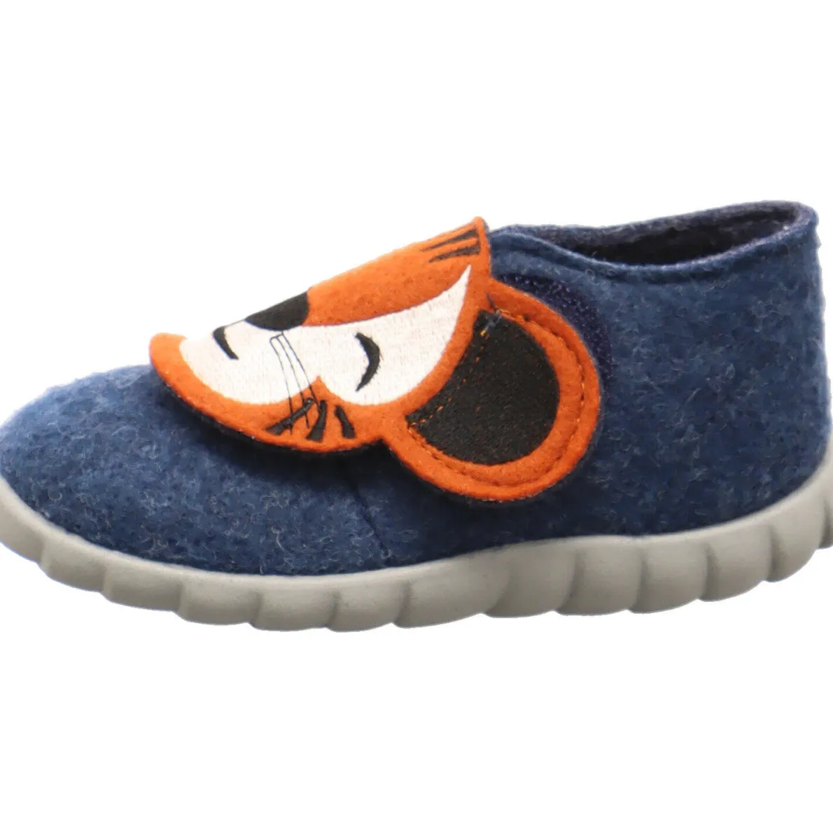 Der Kinder Hausschuh Flexi von Fischer Markenschuh ist aus Filz und begeistert jeden Jungen mit der coolen Tiger Applikation und der Aufmachung in trendigem Blau.