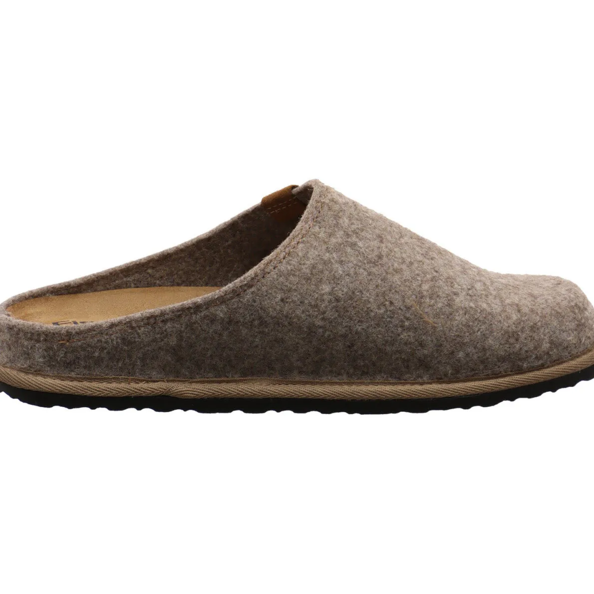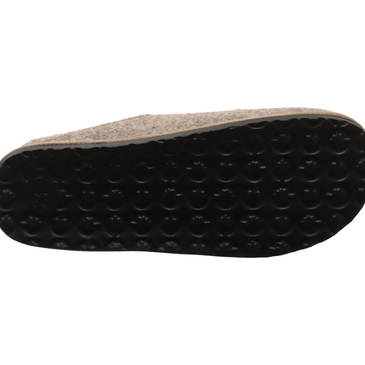Das Obermaterial aus recyceltem Textil Filz in Beige macht den Schuh robust und langlebig. Die Gummisohle gibt perfekten Halt, so kommst du auch auf glatten Böden nicht ins Rutschen. Durch das Wechselfußbett eignet sich der Hausschuh auch perfekt für lose Einlagen. Der Schuh ist dabei super leicht und flexibel.