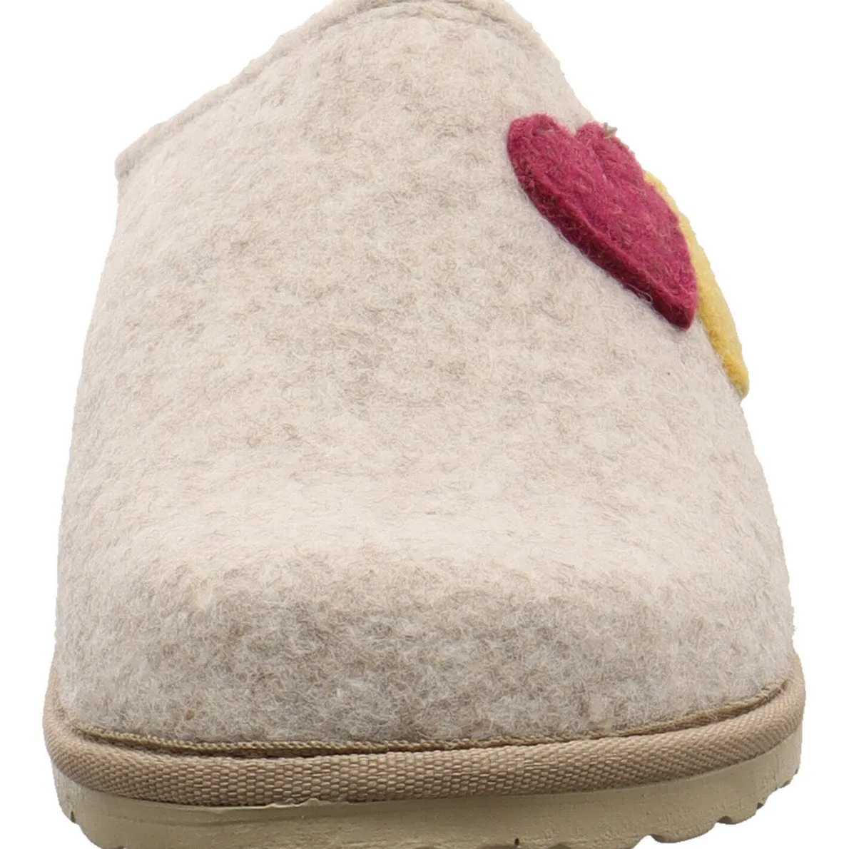 Das Obermaterial aus recyceltem Textil Filz in Birke Grau macht den Schuh robust und langlebig. Hingucker ist dabei die Applikation der Herzen in Pink und Gelb. Die Gummisohle gibt perfekten Halt, so kommst du auch auf glatten Böden nicht ins Rutschen. Durch das Wechselfußbett eignet sich der Hausschuh auch perfekt für lose Einlagen. Die Pantolette ist dabei super leicht und flexibel.