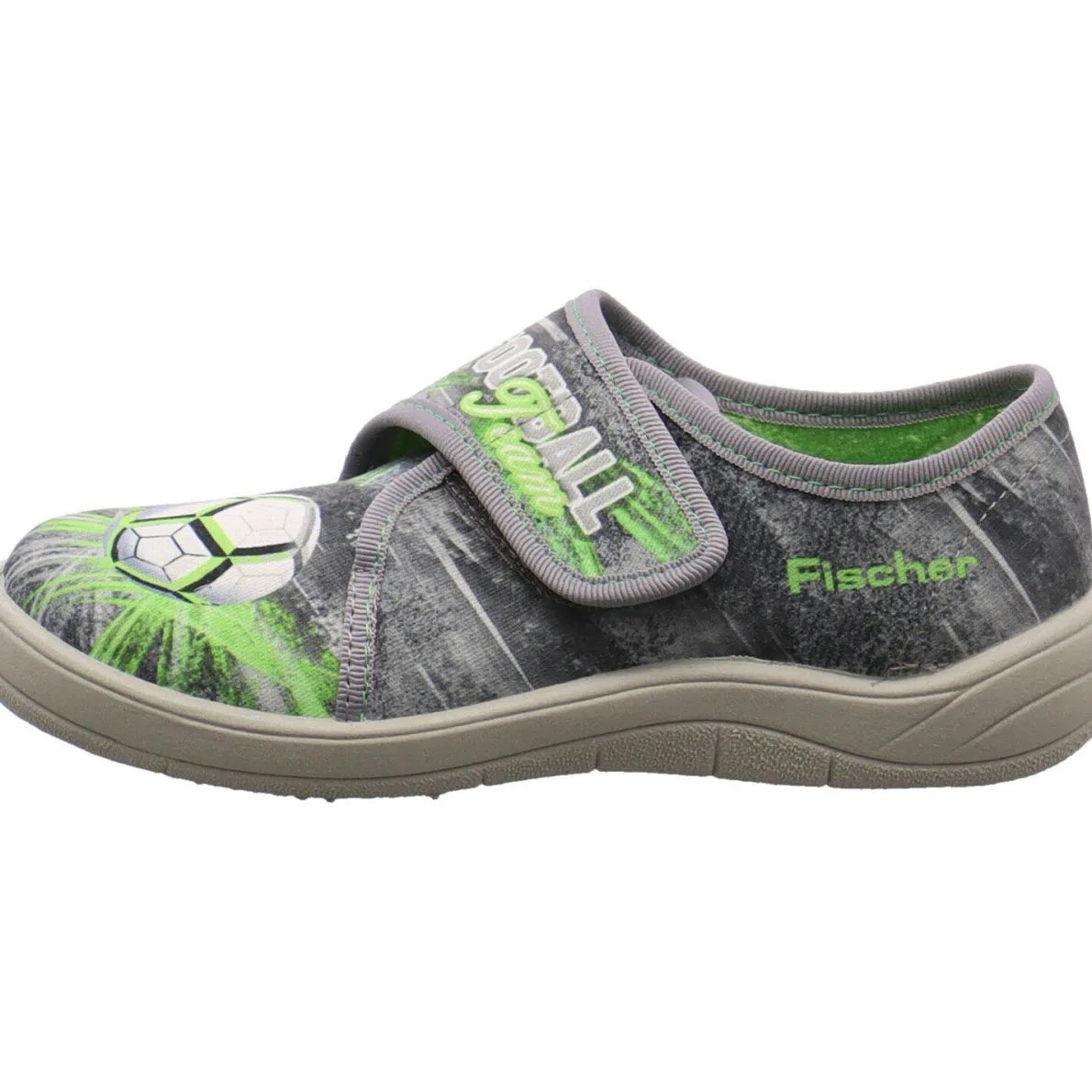 Dieser Kinder Klett Hausschuh Tim von Fischer Markenschuh, mit dem Fußball Print auf dem Blatt, ist perfekt für Jungen die zu Hause, im Kindergarten oder der Schule toben und herum tollen wollen. Auch der Spruch “Football Team” auf dem Klettverschluss ist ein Hingucker.
