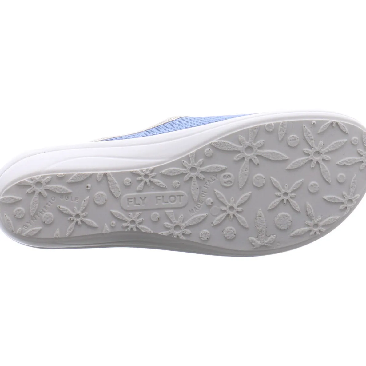 Dieser Damen Hausschuh vom italienischen Hersteller Fly Flot überzeugt durch sein besonders leichtes Gewicht und die ausgefeilte anatomische Ausstattung.