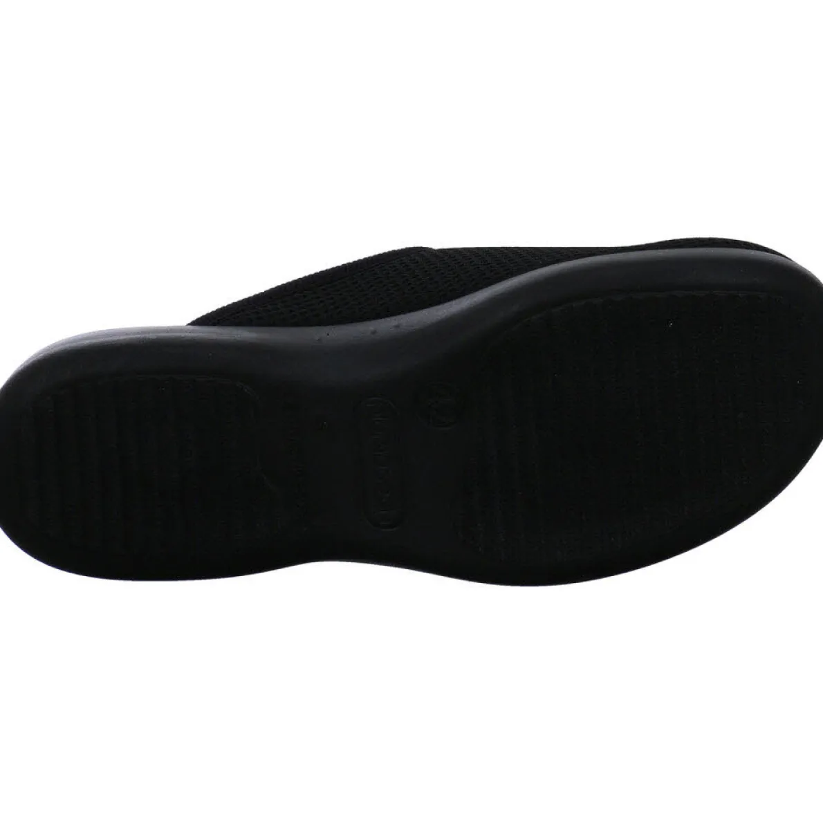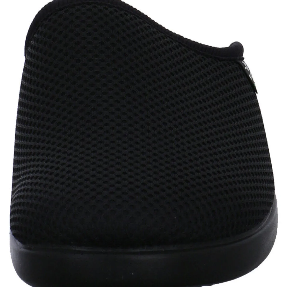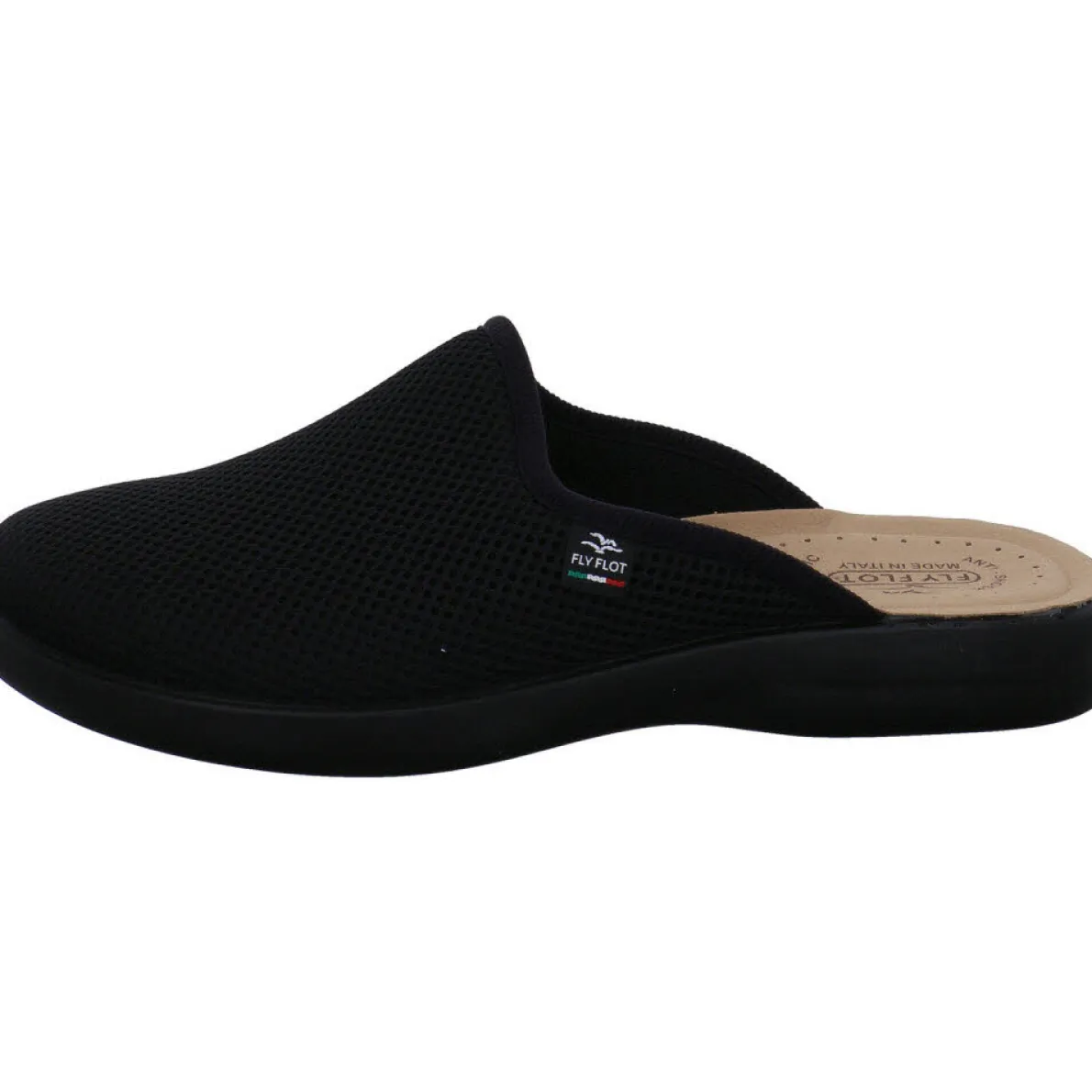 Dieser hochwertig verarbeitete Herren Hausschuh aus Textil Mesh in Schwarz vom italienischen Hersteller Fly Flot überzeugt durch sein besonders leichtes Gewicht und die ausgefeilte anatomische Ausstattung. Mit einer hervorragenden Anti Schock Sohle und einem Fußbett, das sich individuell Ihren Füßen anpasst ist er besonders bequem und eine Wohltat für Ihre Füße. Die leicht profilierte Synthetik Laufsohle gibt guten Halt in Haus und Hof.