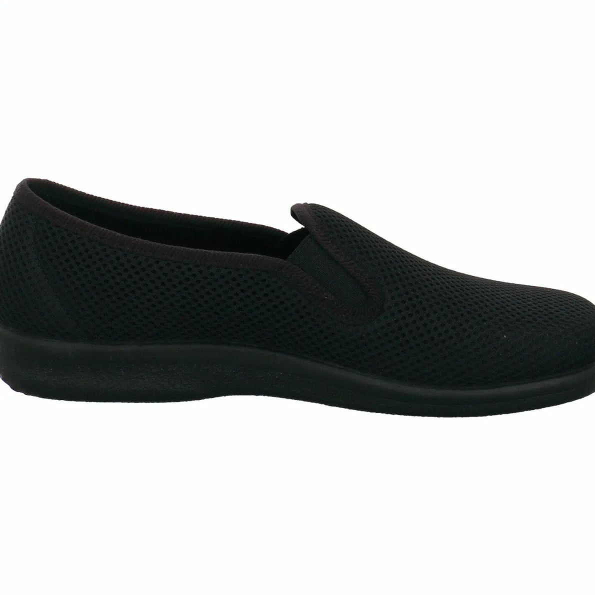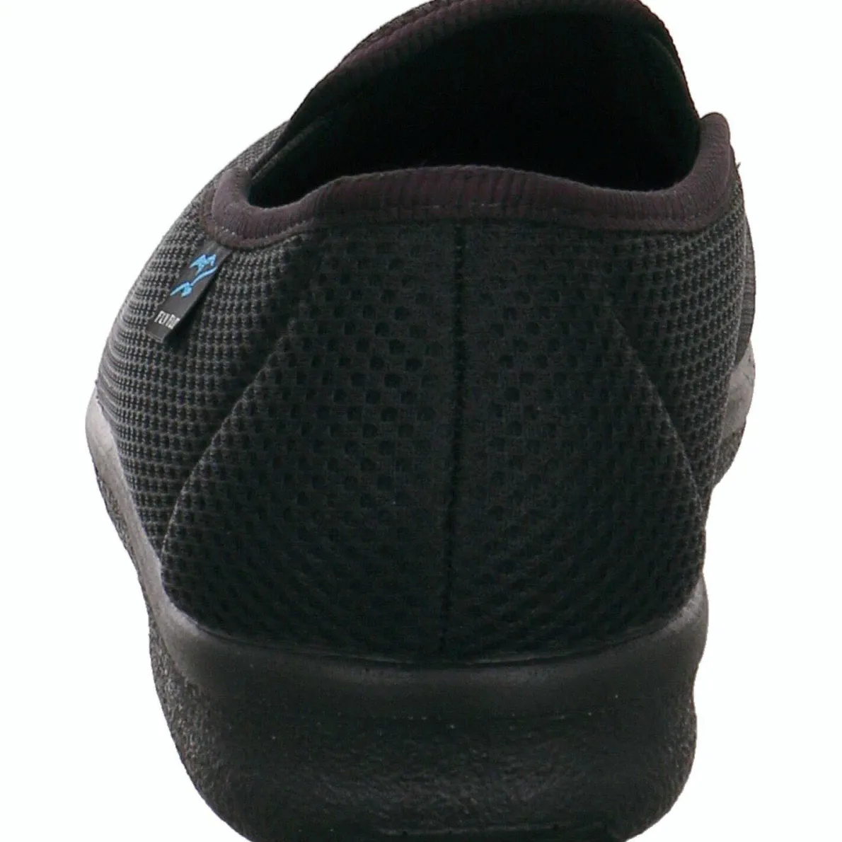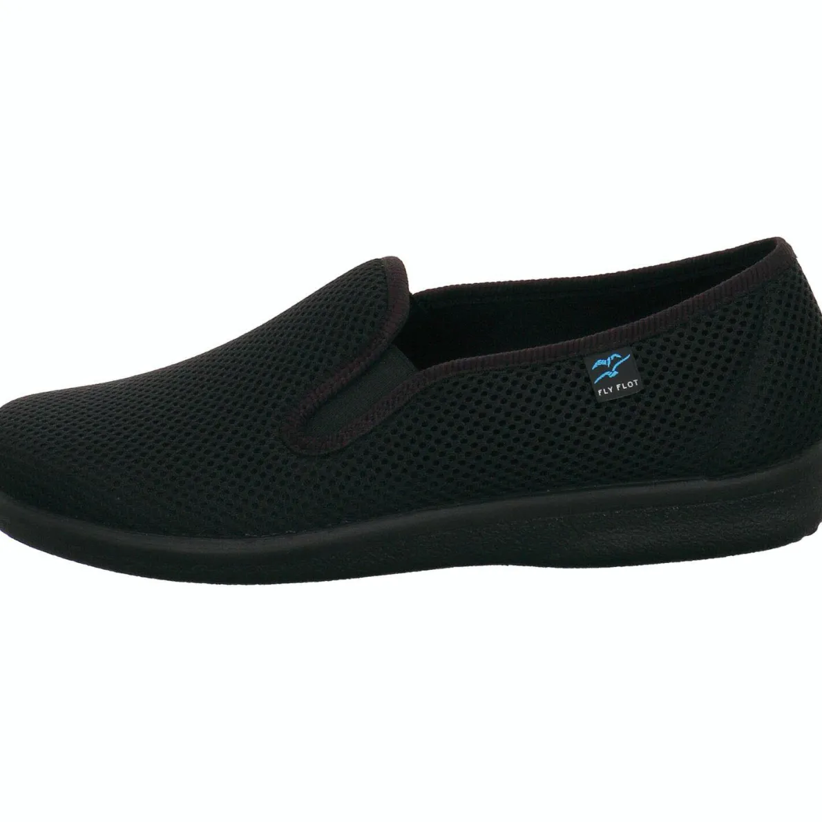 Dieser Herren Hausschuh von Fly Flot garantiert bequeme Stunden in den eigenen vier Wänden. Er wurde aus softem Textil in Schwarz gefertigt und stichtdurch die Mesh Optik ins Auge. Besonders der Komfort überzeugt auf ganzer Linie. Das anatomische Wechselfußbett passt sich perfekt Ihrer Fußform an und durch die Antishock Ausstattung wird jeder Schritt gedämpft. Die flexible Gummilaufsohle bietet einen hohen Komfort beim laufen und durch die Gummipanels ist ein leichter Ein- und Ausstief möglich.