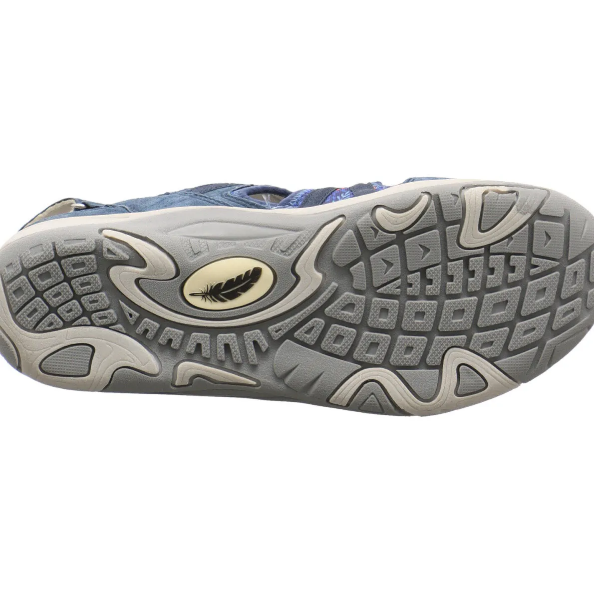 Das Obermaterial wurde aus Veloursleder und Textil in Blau gefertigt. Die Cutouts in Verbindung mit den Textil Stretch Einsätzen bieten eine optimale Belüftung der Füße auch an warmen Tagen.