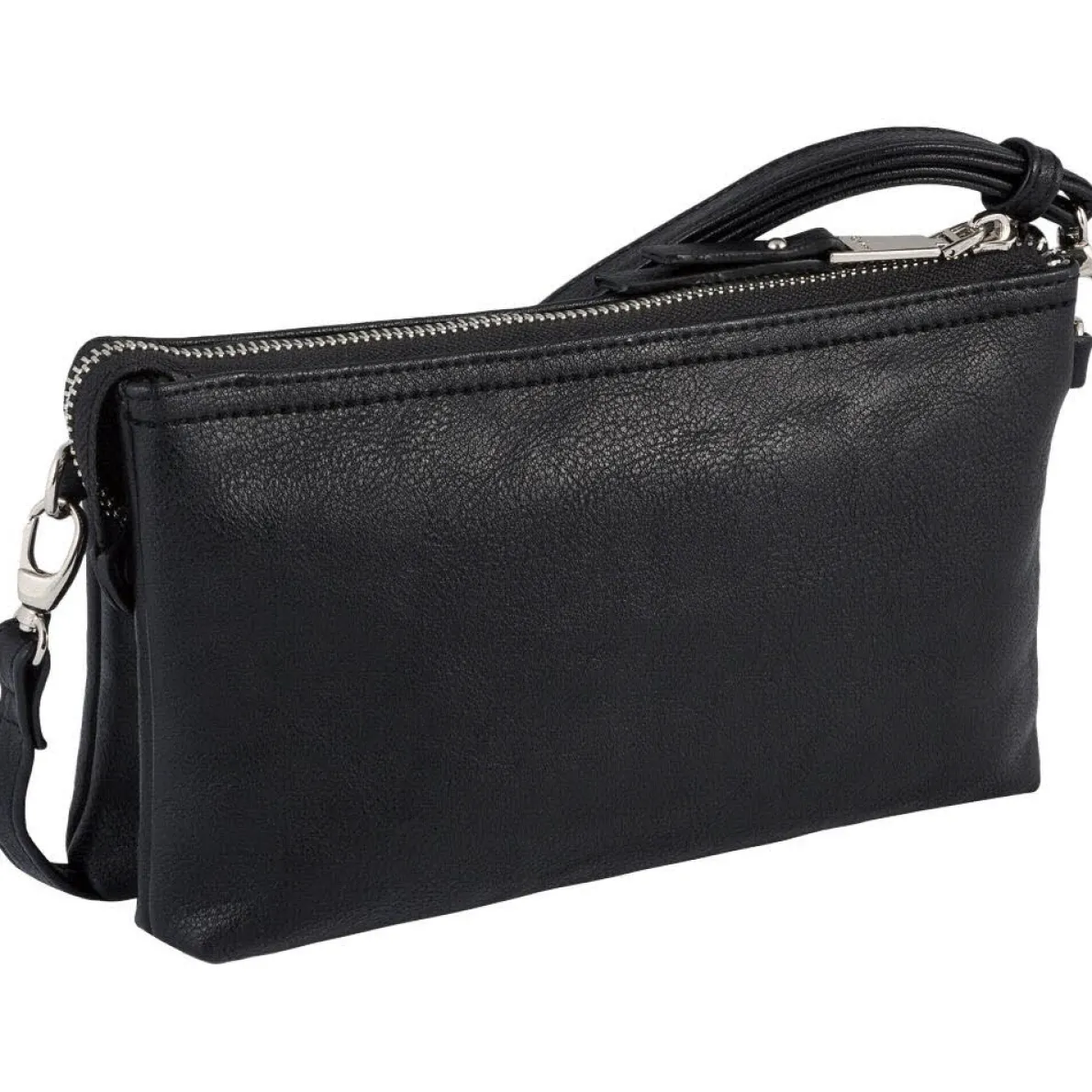 Hingucker sind das dezente Marken Logo, die Ziernähte auf dem grob genarbten Kunstleder und das Innenfutter mit Punkte Muster. Das kompakte Format der Handtasche bietet Platz für alles, was Du beim Ausgehen dabei haben möchtest oder was Dich am Abend begleiten soll.