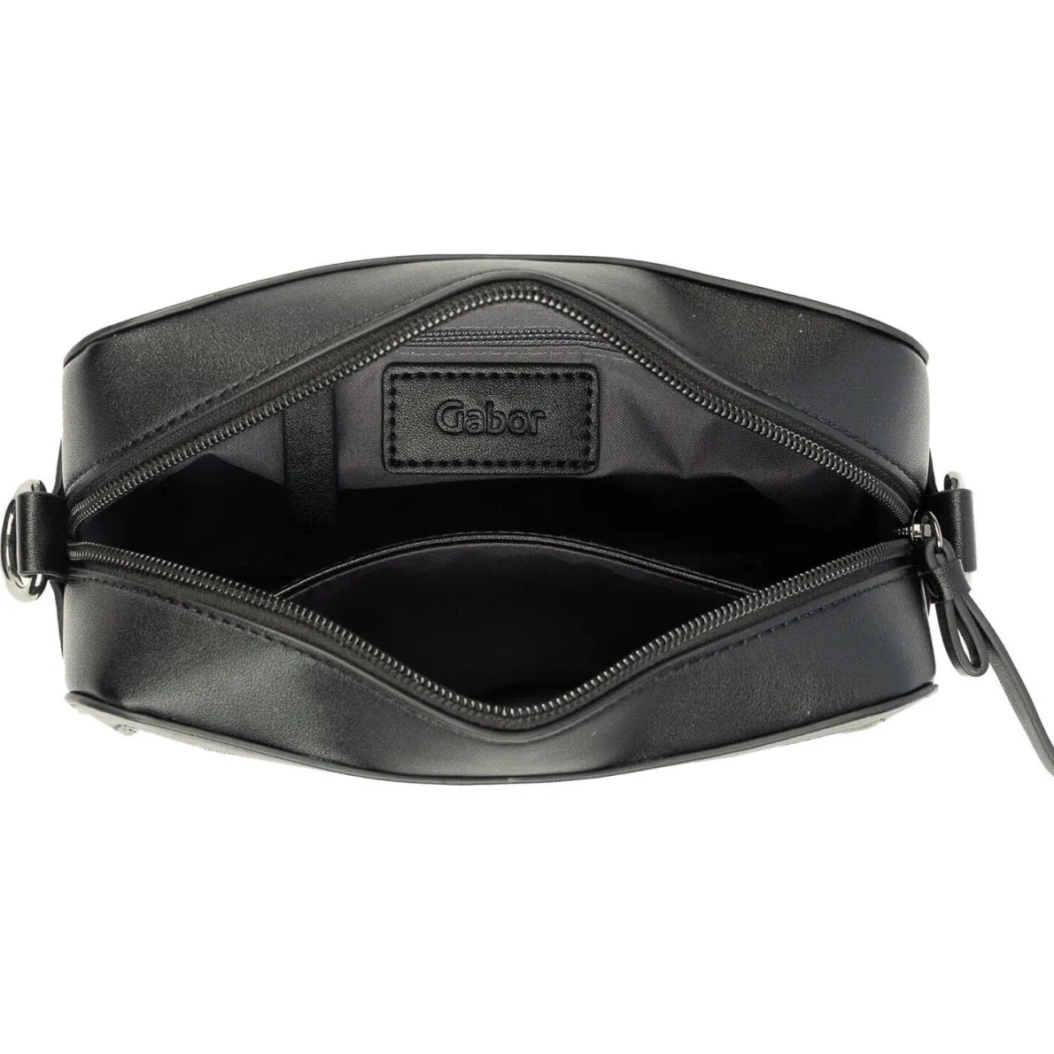 Die Meria Camera Bag ist eine schicke kleine und absolut praktische Damen Umhängetasche in Schwarz und Grau von Gabor Bags und ein Must-Have für dein neues Outfit.