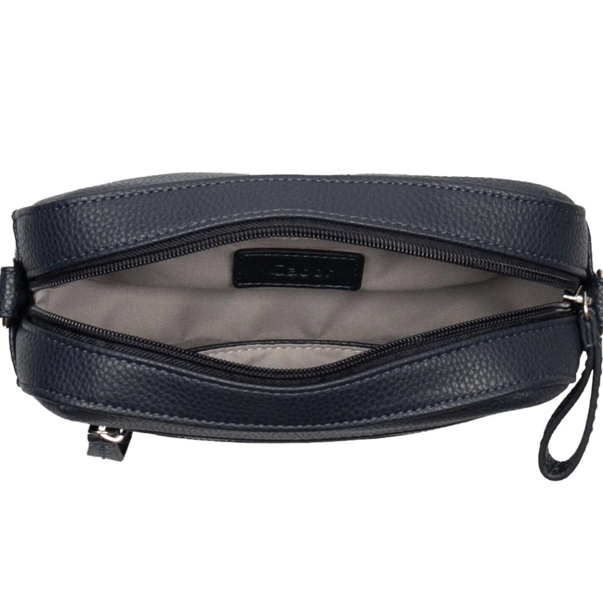 Ein zweiter verstellbarer Gurt in Taschenfarbe kann wahlweise ausgetauscht werden und ermöglicht ein einfaches crossover Tragen der Umhängetasche.