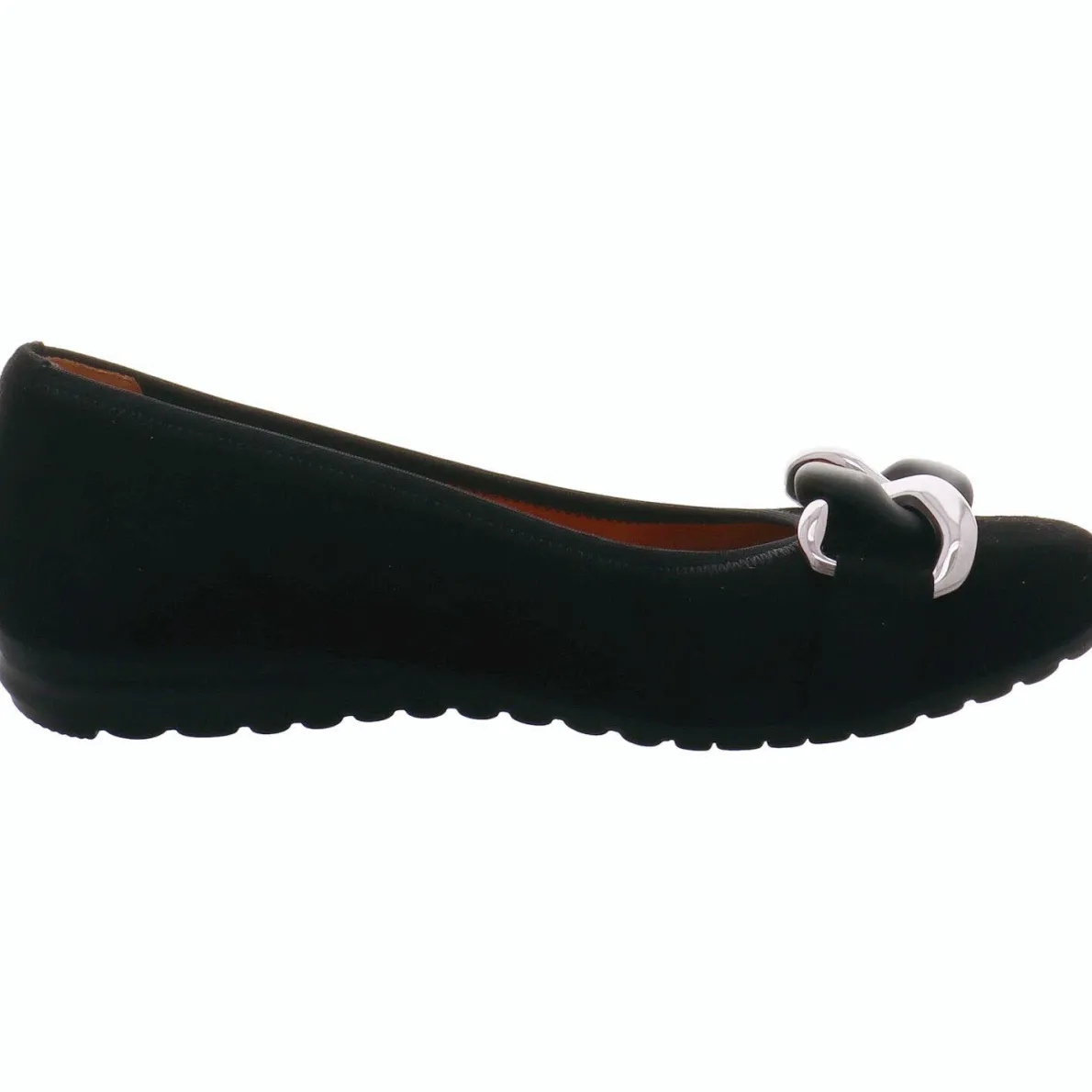 Dieser klassische Damen Ballerina aus hochwertigen Nubukleder in Schwarz stammt aus dem Hause Gabor und ist ein vielseitiger Weggefährte. Das Band auf der Schuhspitze ist ein Hingucker und gibt dem ansonsten klassischen Schuh eine besondere Note.