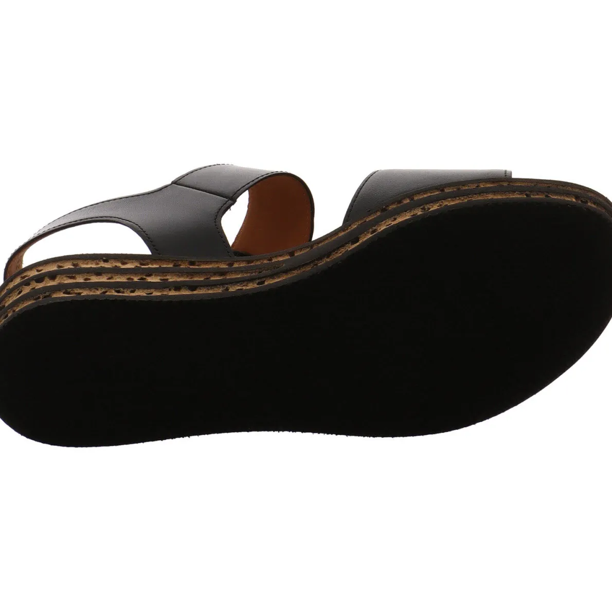 Die Leder Innensohle ist angenehm weich gepolstert. Absolutes Highlight der Sandalette ist der Keilabsatz in Kork Optik der lange Beine zaubert und super angenehm zu Tragen ist.