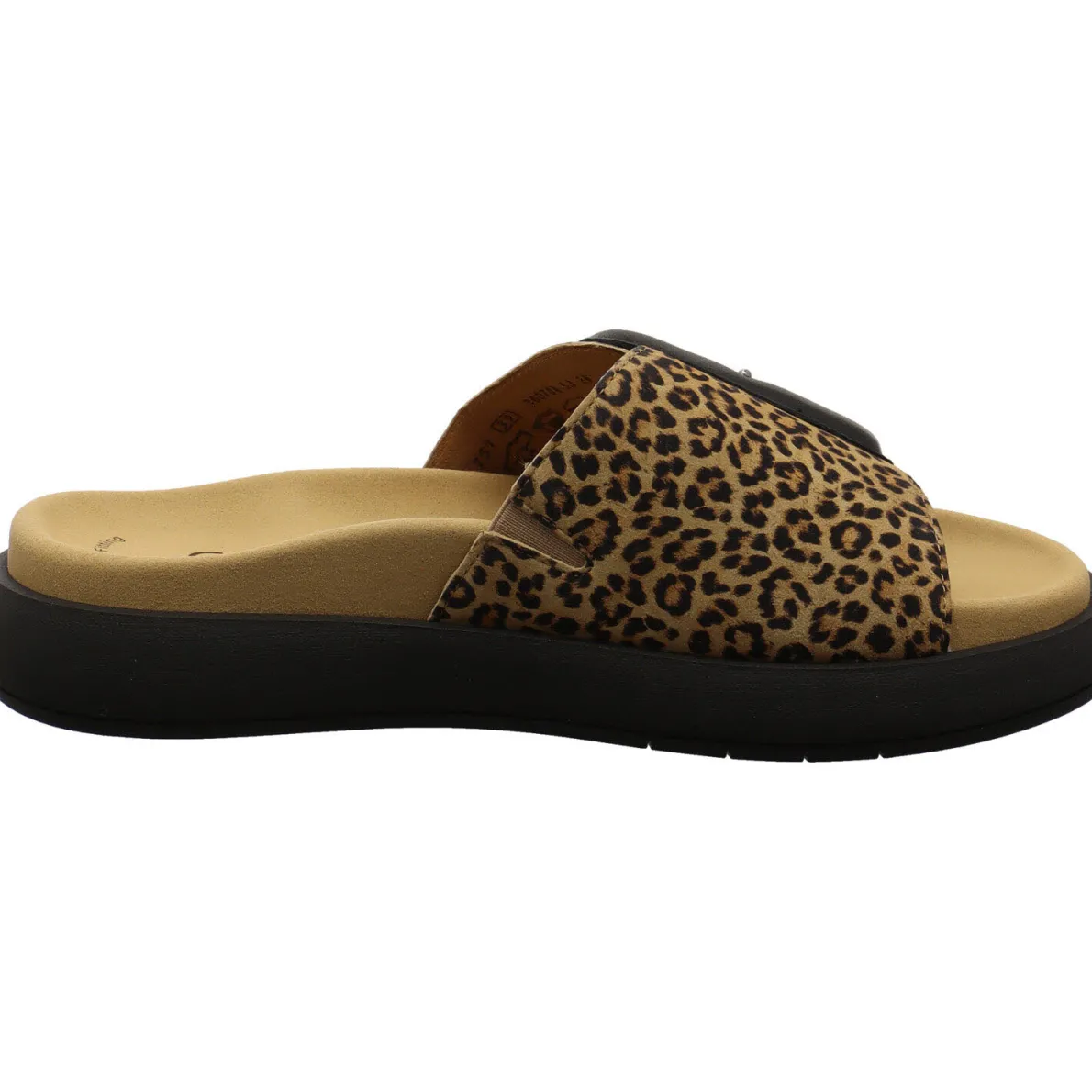 Genau das Richtige für den Sommer ist diese modische Damen Pantolette von Gabor. Sofort ins Auge fällt der breite Riemen aus echtem Nubukleder mit einem trendigen Leo Animal Print. Dieser ist mit einer Schnalle verziert. Zusätzlich kann er mit einem Klettverschluss ganz individuell auf deinen Fuß angepasst werden. Ein seitlicher Dehngummi sorgt für zusätzlichen Komfort. Die Best Fitting Innensohle ist angenehm weich und bequem.