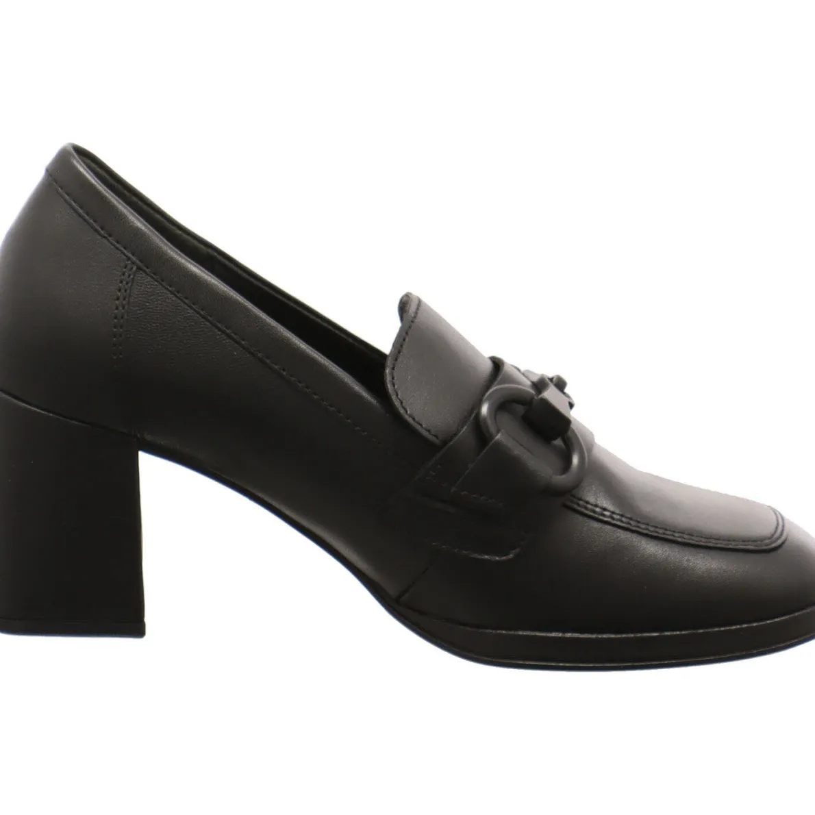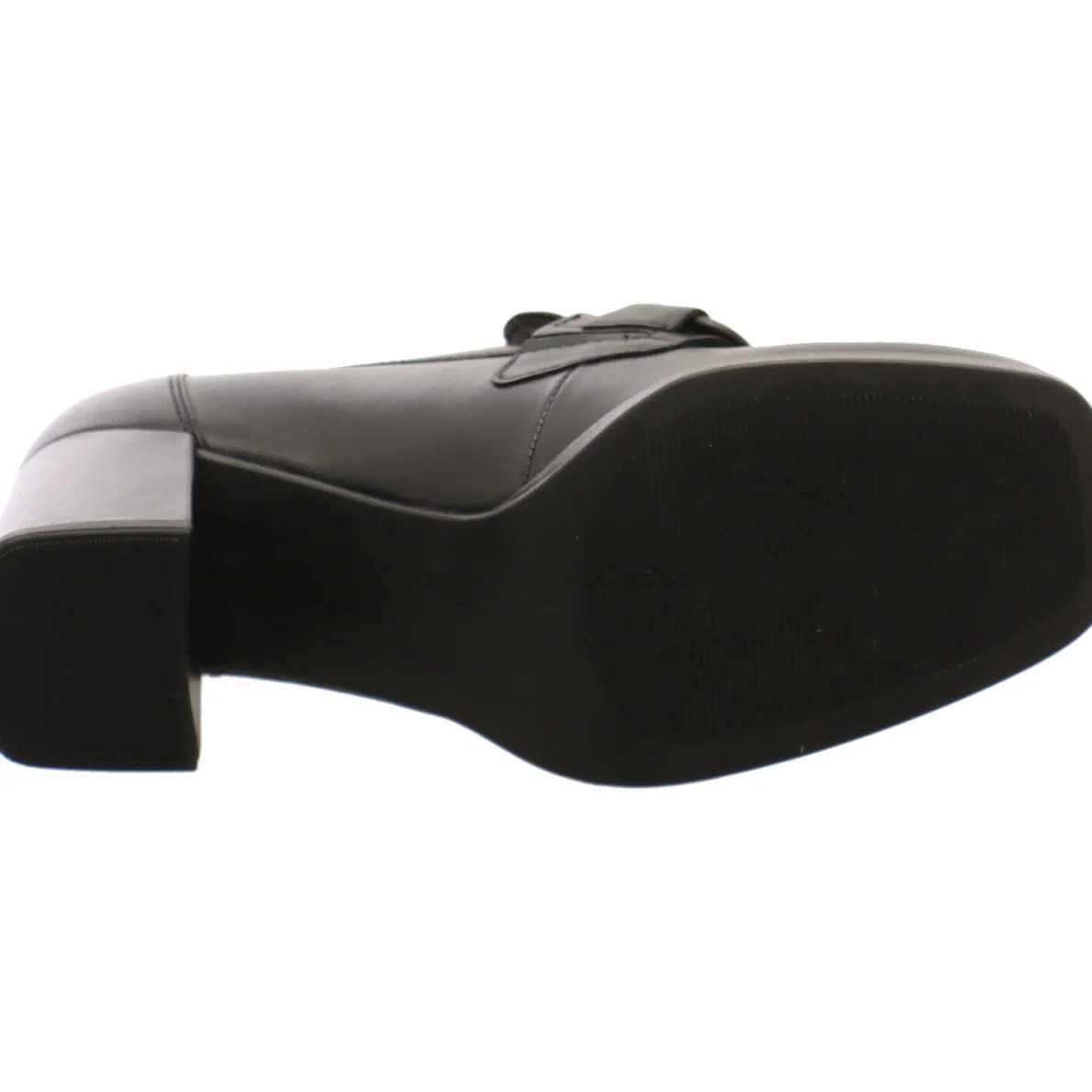 Gefertigt aus Echtleder in Schwarz, ist er auf dem Rist mit einer Metall Applikation versehen, welche in Matt Schwarz gehalten ist. Ob für das Büro oder lieber Casual zur Jeans, Rock oder Kleid, der Schuh passt perfekt zu jedem Style. Die Best Fitting inennsohle ermöglicht ein angenehmes Tragegefühl, auch an langen Tagen auf den Beinen. Das kleine Plateau der Laufsohle passt perfekt zu dem 7 cm hohen Blockabsatz, der tolle lange Beine zaubert, aber dennoch sehr bequem ist.