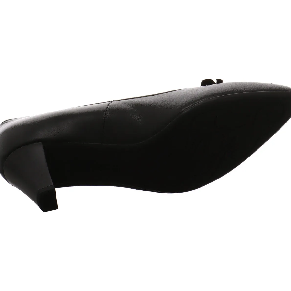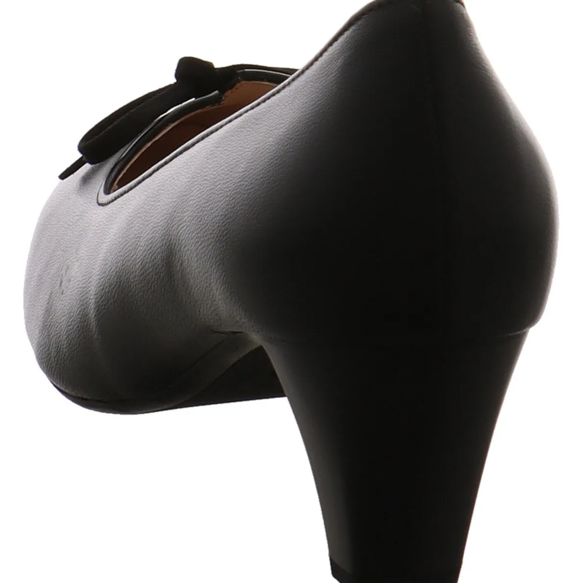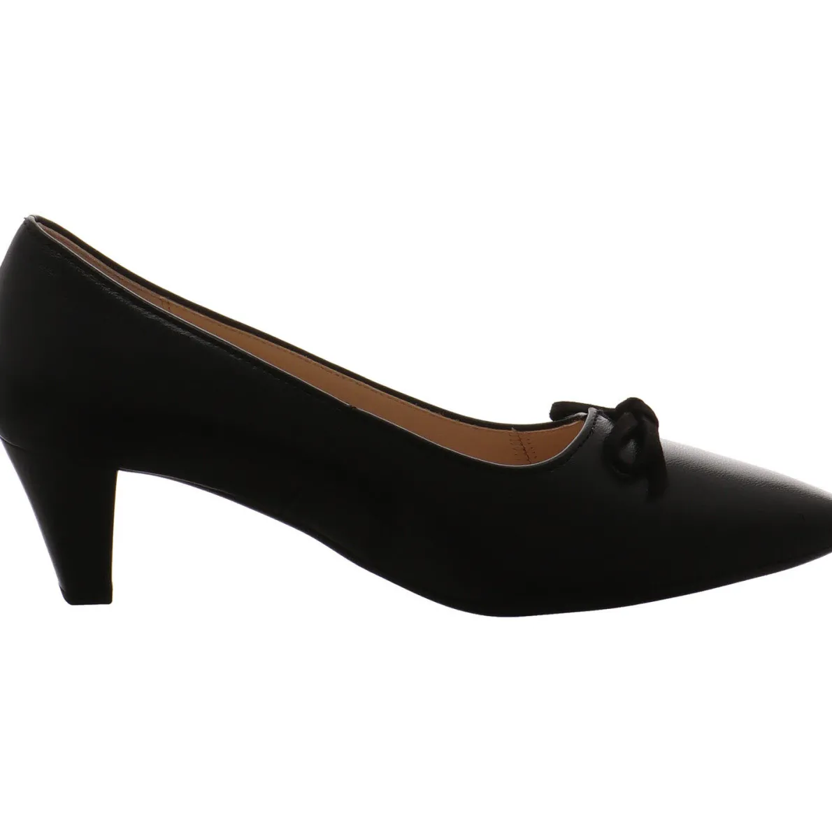 Dieser elegante Gabor Damen Pumps in klassischem Schwarz zieht mit Sicherheit Blicke auf sich. Das Obermaterial aus hochwertigem Leder ist mit einer schicken Schleife auf dem Blatt aufgewertet. Dieses edle Design ist ein wahrer Eye-Catcher. Der 5,5 cm hohe Trichterabsatz macht das Laufen in Kombination mit dem softweichen Echtlederfußbett zum absoluten Vergnügen. Dieser Schuh ist der ideale Begleiter für besondere Anlässe, aber auch super im Alltag kombinierbar.