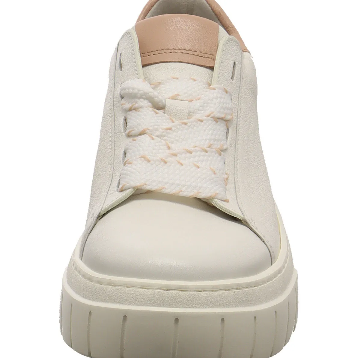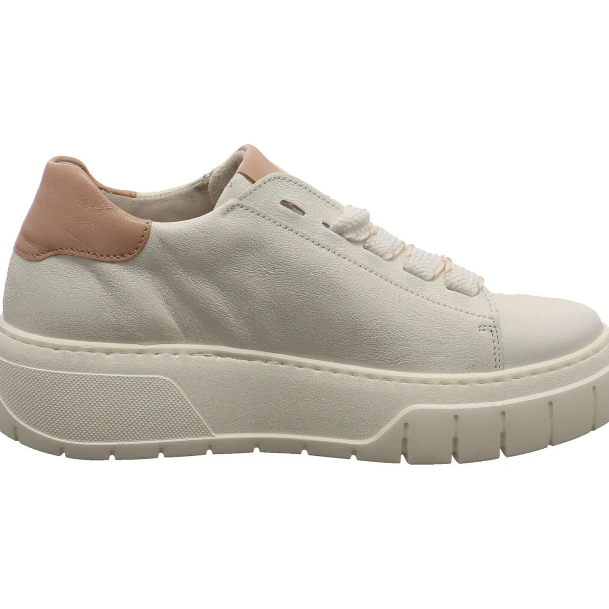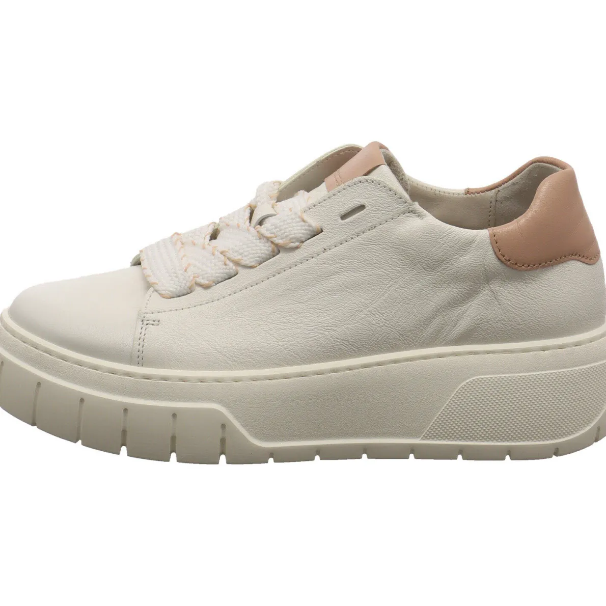 Er wurde aus hochwertigem Echtleder in Weiß gefertigt. Farbakzente in Braun, auf der Zunge und Ferse passen super dazu. Highlights sind die breite Schnürung und die markante Plateausohle. Der Schaft ist angenehm weich gepolstert und die Best Fitting Innensohle ist auch bei diesem Modell als Wechselfußbett gearbeitet. Toll finden wir das der Schuh super leicht gearbeitet ist.