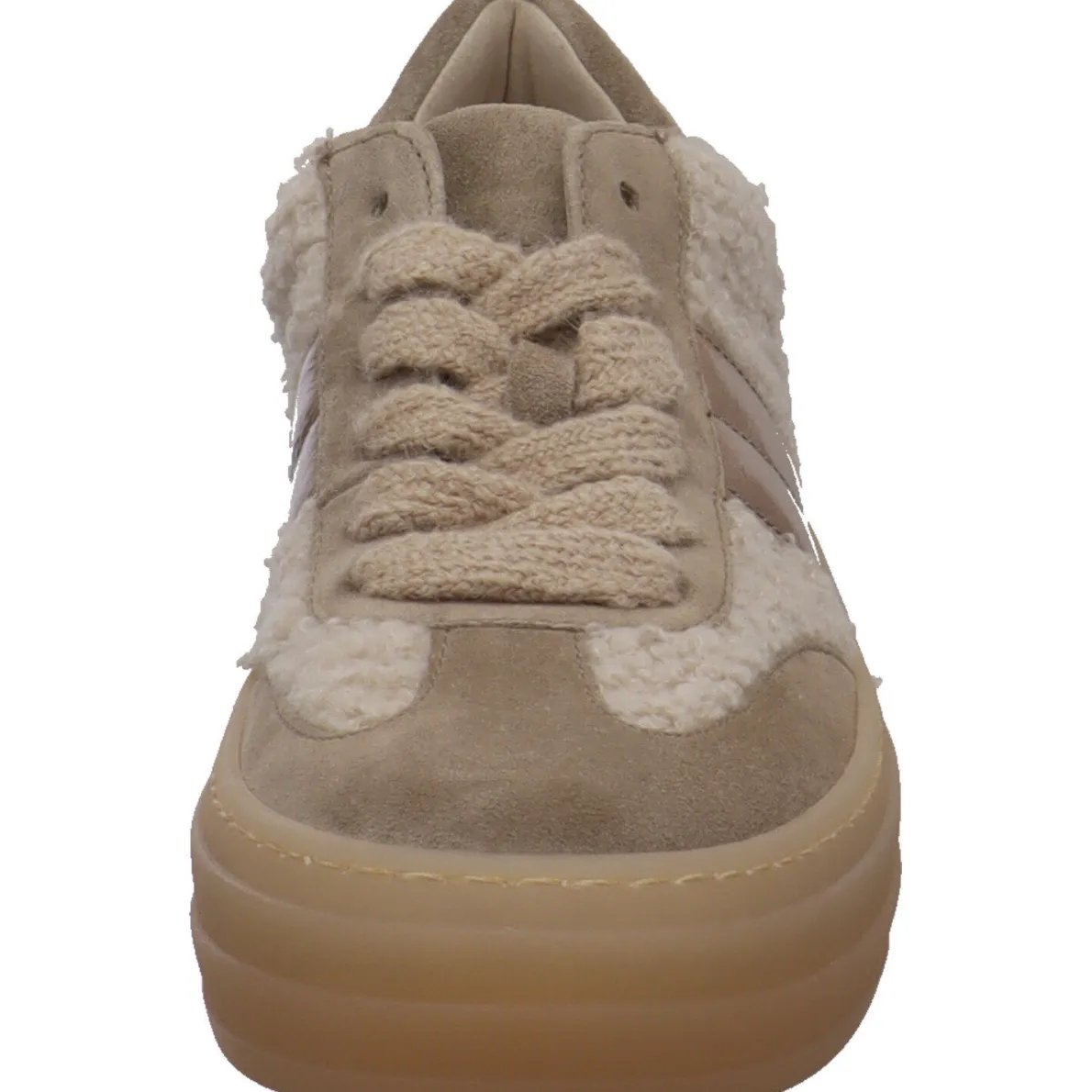 Das griffige Obermaterial aus Veloursleder in Beige besticht durch tolle Details aus Teddyfell und glänzende Parts in Lack-Optik. Die Best Fitting Innensohle ist als Wechselfußbett gearbeitet und besteht aus weichem Leder. Die breiten Schnürsenkel verleihen dem Schuh eine besondere Optik.