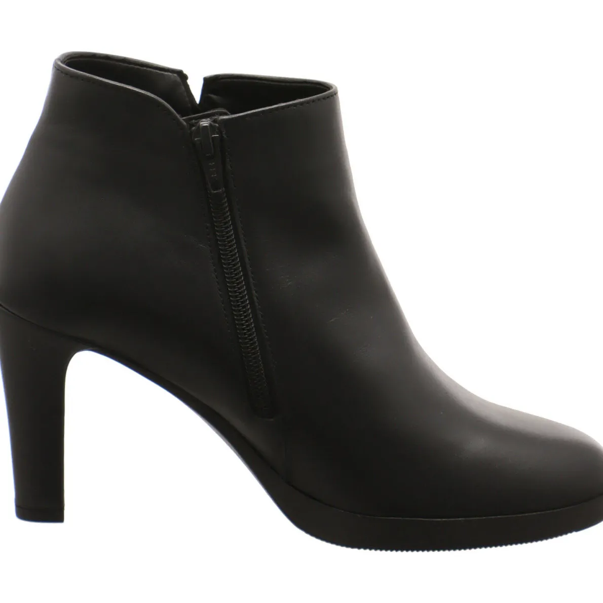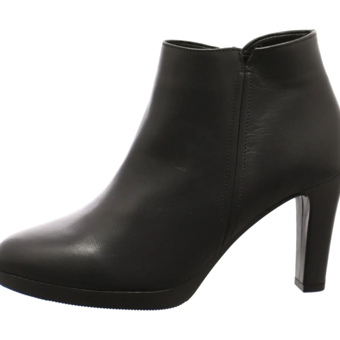 Gefertigt aus weichem, hochwertigem Echtleder in Schwarz, ist sie auf der Innenseite mit einem Reißverschluss versehen, der für einen leichten Einstieg sorgt. Die grobe Naht an der Außenseite gibt dem sonst eher schlichten Schuh eine besondere Note und macht ihn zum Hingucker.