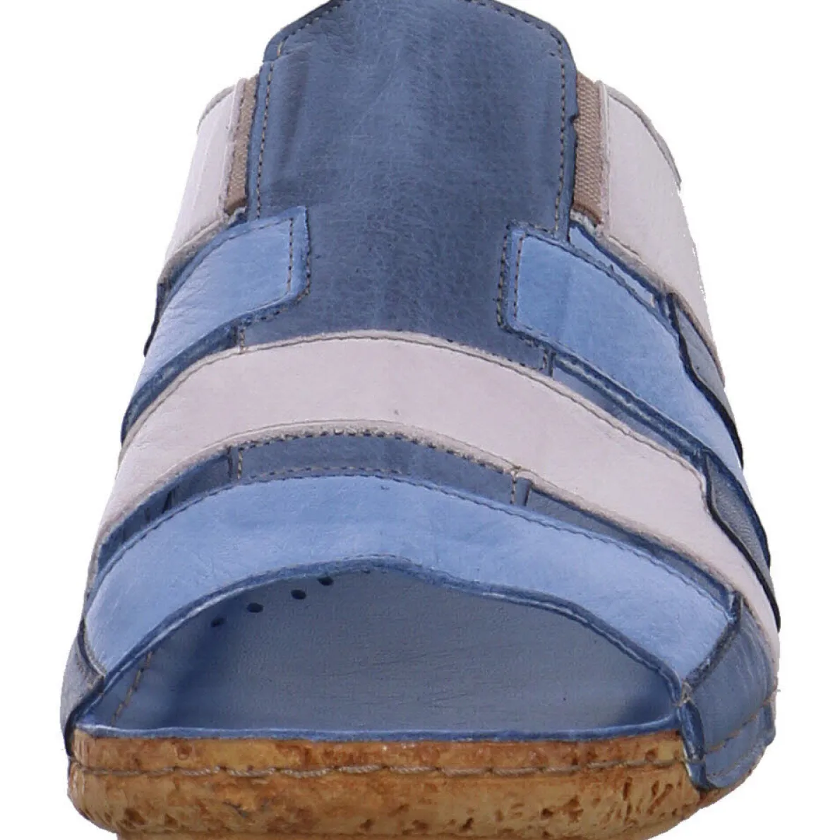 Diese absolut bequeme Damen Pantolette von Gemini ist ein perfekter Begleiter für die warme Jahreszeit. Hand gefertigt aus hochwertigem Leder in Blau und mit dem Keilabsatz in Korkoptik ist sie ein echter Hingucker. Abgerundet wird das schicke Design durch die farblich arrangierten Riemen.