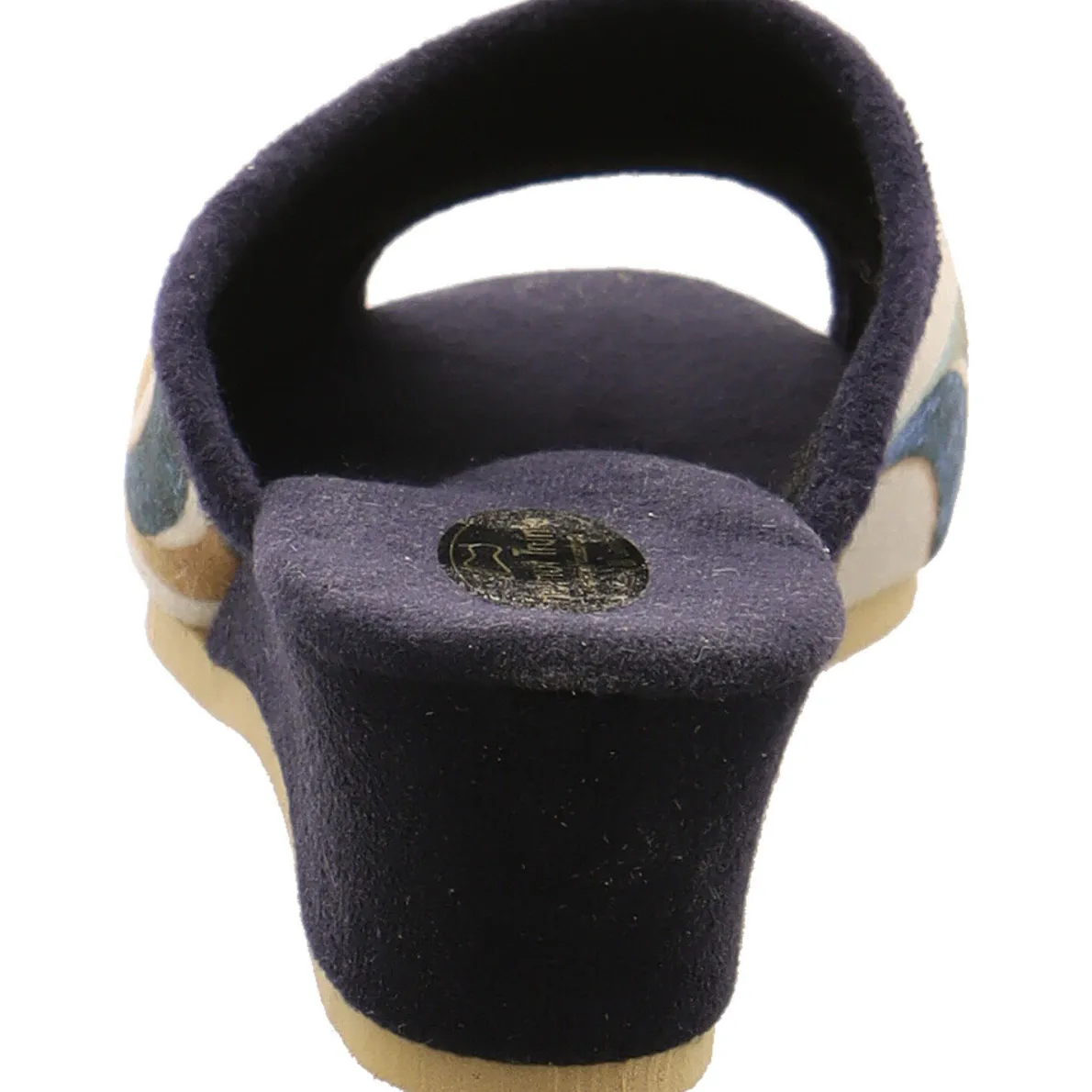 Das weiche Obermaterial aus Textil in Blau ist mit einem graphischen Muster versehen. Der Schuh lässt sich durch das gepolsterte, anatomische Fußbett besonders angenehm tragen. Das Futter der Pantolette ist langlebig und feuchtigkeitsabweisend.