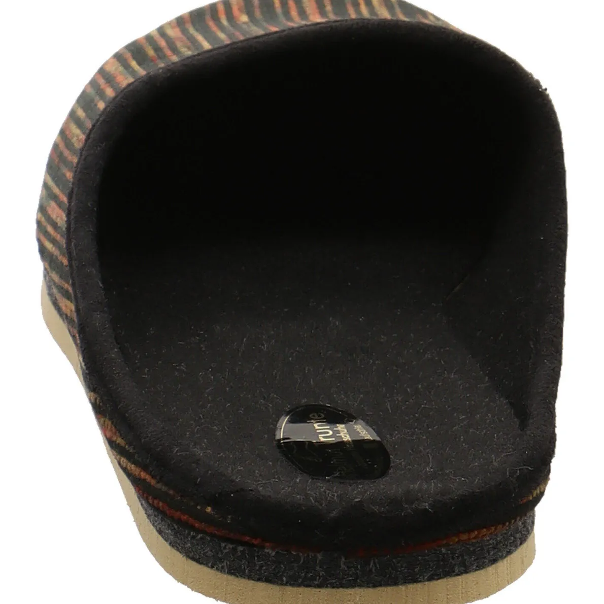 Das textile Obermaterial dieser Pantoffeln in Braun ist vielseitig und pflegeleicht und die stark dämpfende Filz-Zwischensohle ermöglicht einen stets weichen Auftritt. Die sehr leichte und rutschfeste Poro-Sohle gibt zudem sicheren Halt auf Treppen und glatten Böden.