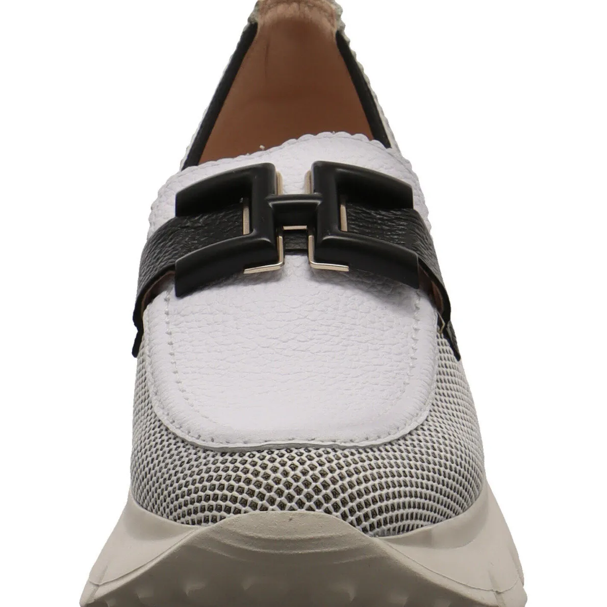 Der Schuh wurde aus einer Kombination aus hochwertigem Rindsleder in Weiß und Schwarz mit atmungsaktivem Textil Mesh an der Seite gefertigt und zieht mit Sicherheit Blicke auf sich.