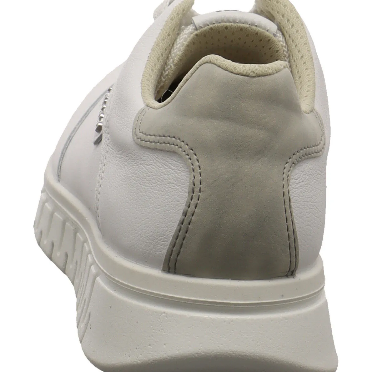 Gefertigt wurde der Sneaker für Herren hochwertigem, genarbtem Echtleder in klassischem Weiß, mit einem Einsatz am Schaft, der sich in hellem Grau präsentiert.