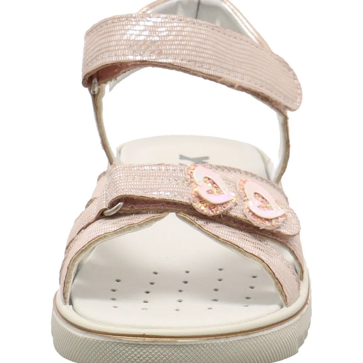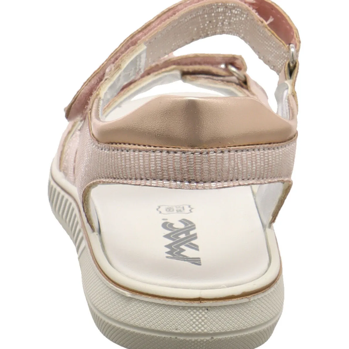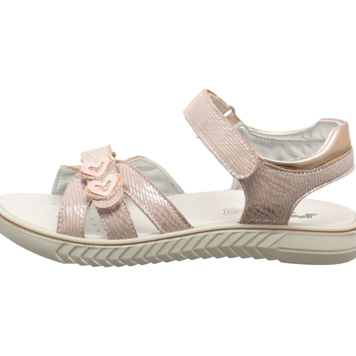 Diese tolle Kinder Sandale für Mädchen aus dem Hause Imac wurde aus Kunstleder in Rosa mit Akzenten in Gold gefertigt. Der Schuh ist mit einem schönen Metallic Effekt und auf dem Blatt mit kleinen Herzen verziert und wird so zum echten Hingucker.