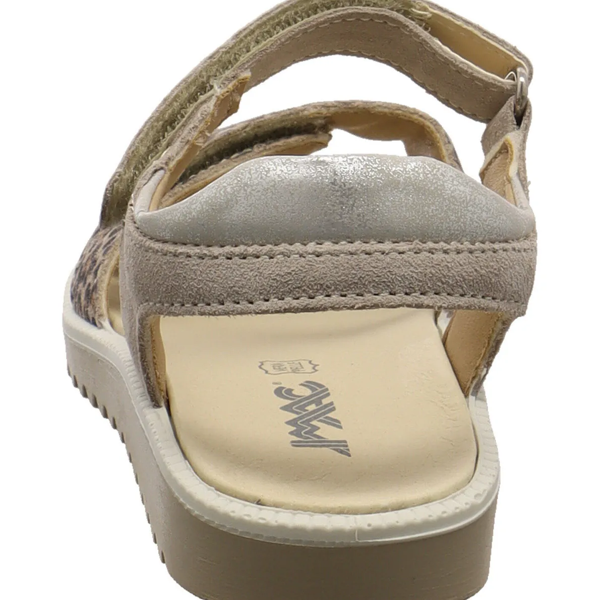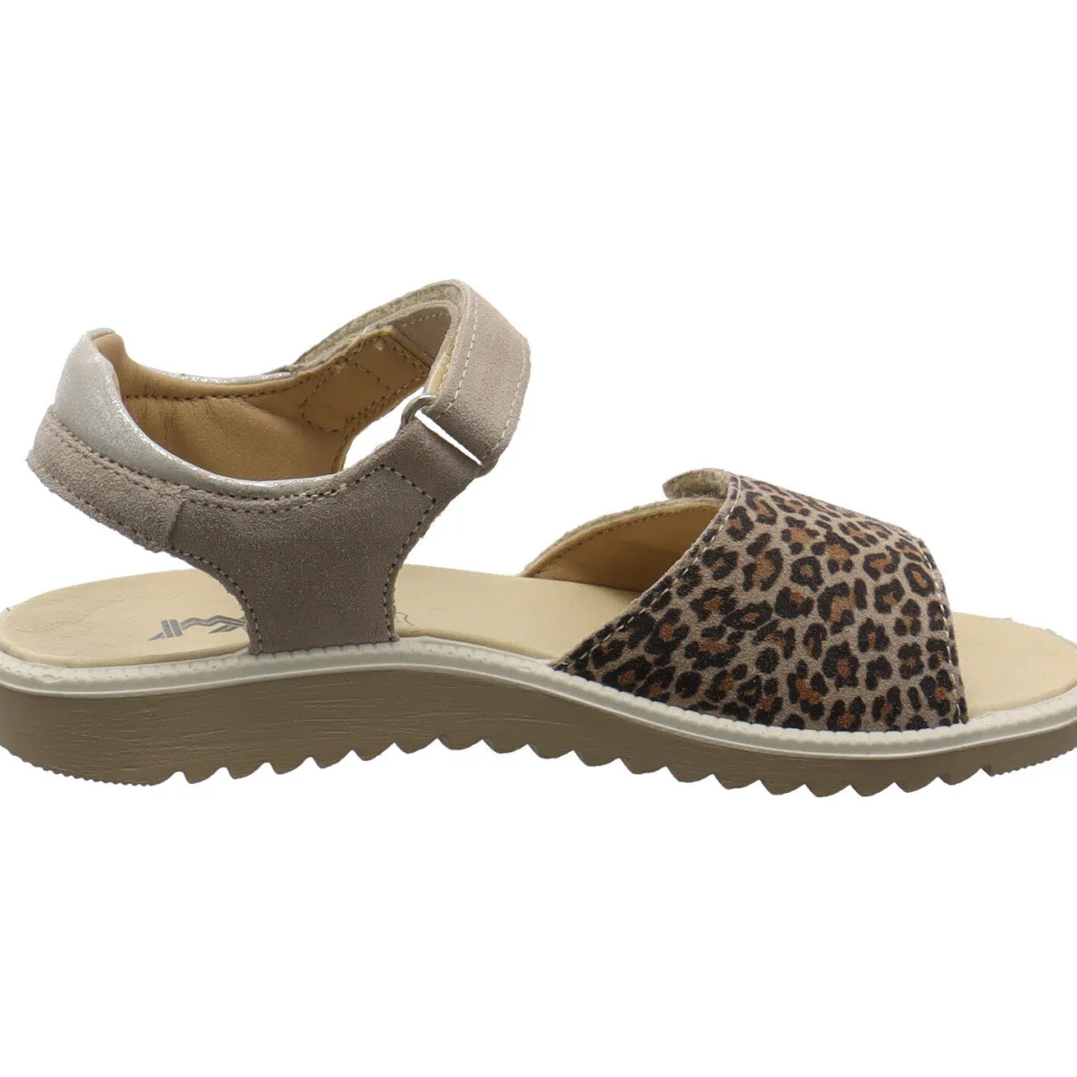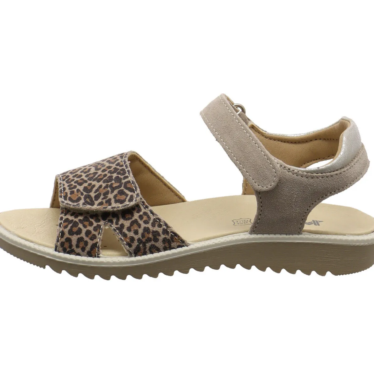 Perfekt für den Sommer ist diese tolle Kinder Sandale Axylin von Imac. Sie begeistert jedes Mädchen durch den tollen Leo Animal Print auf dem vorderen Riemen. Das Obermaterial aus Nubukleder ist am hinteren Riemen mit einem Metallic schimmernden Einsatz versehen. Durch den doppelten Klettverschluss ist der Einstieg ganz einfach und der Schuh kann ganz individuell angepasst werden. Die Innensohle aus Echtleder ist im vorderen Bereich zusätzlich perforiert, so hat dein Kind auch an warmen Tagen ein angenehmes Tragegefühl. Die flexible Laufsohle ist zusätzlich stoßdämpfend gearbeitet.