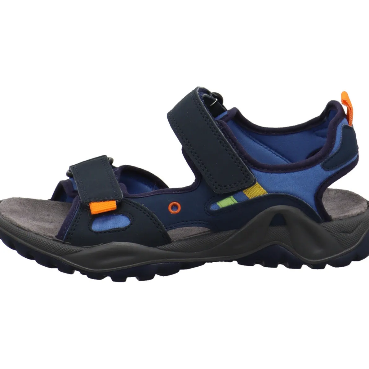 Gefertigt aus Kunstleder in Blau ist der Schuh innen mit Textil ausgestattet und bietet ein angenehmes Tragegefühl. Aufgelockert wird das Design durch Farbakzente in Orange, Gelb und Grün. Durch den doppelten Klettverschluss lässt der Schuh im Trekking Look sich optimal dem Fuß anpassen. Die Echtleder Innensohle hat im vorderen Bereich kleine Perforierungen und bietet ein tolles Tragegefühl.