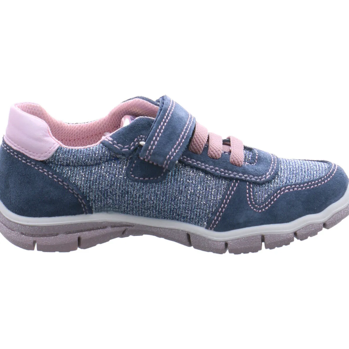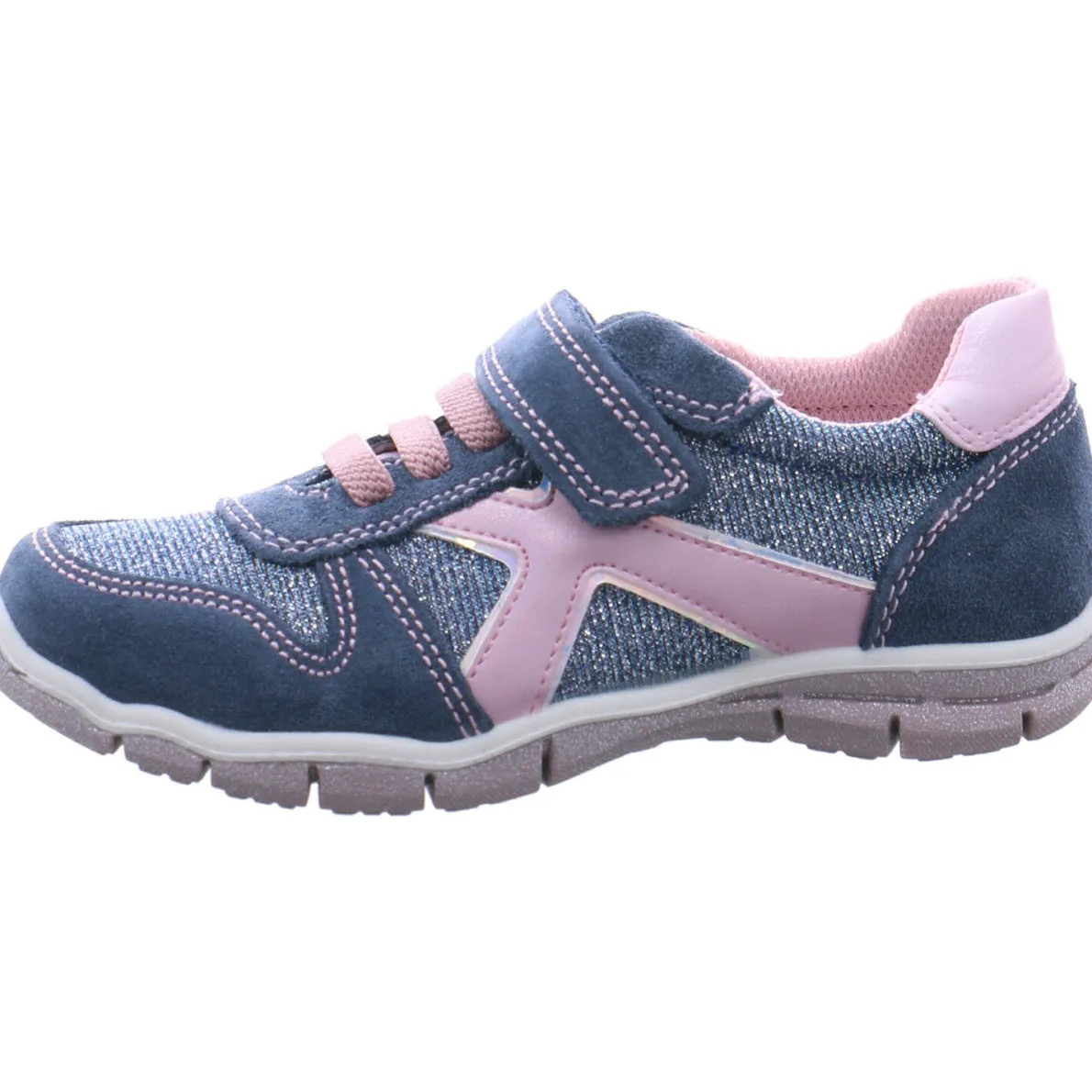 Das Obermaterial in Blau, ist aus einem tollen Mix aus Veloursleder und Synthetik gefertigt und begeistert durch die Glitzer Optik.