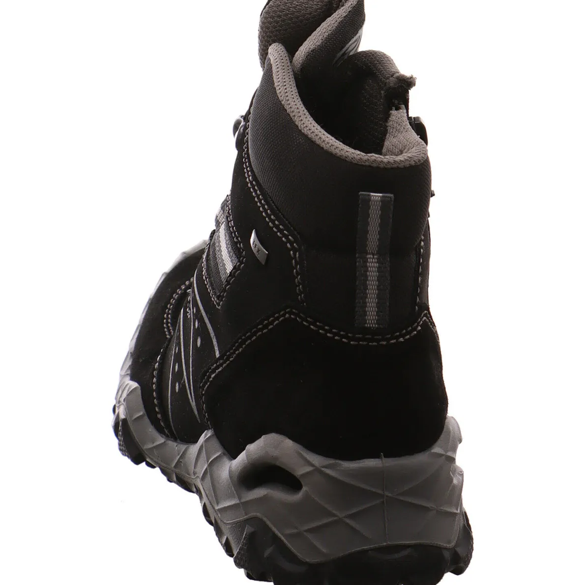Der Schuh begeistert durch seinen Mix aus Veloursleder und Kunstleder in Schwarz mit farblichen Akzenten in Grau.