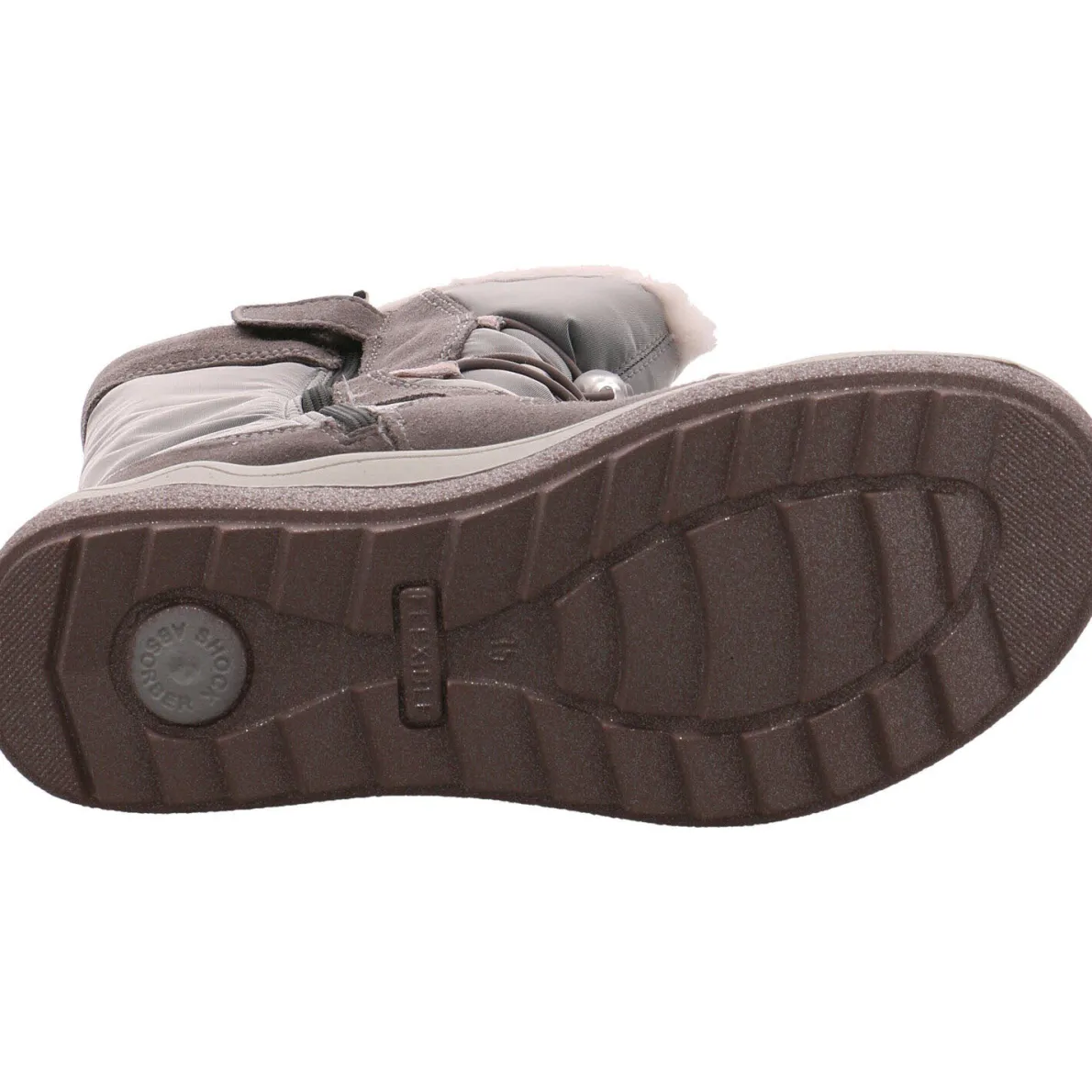 Gefertigt aus einem Mix aus hochwertigem Veloursleder in Grau mit Textil Einsätzen ist er mit einem Herz und Stern im Glitzer Look am Schaft verziert. Die Schuhspitze und Ferse sind verstärkt und dadurch besonders robust.