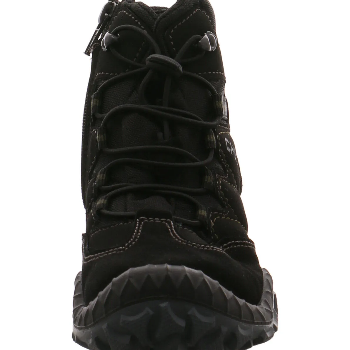 Die Schuhspitze und Ferse sind verstärkt und dadurch besonders robust. Die automatik Schnürung und der seitliche Reißverschluss machen das Anziehen kinderleicht. Der Schaft ist erhöht und angenehm weich gepolstert und durch die integrierte Imac Tex Membran ist der Schuh wasserdicht und atmungsaktiv. Damit die Membran auch wirklich für trockene Füße sorgt, achten Sie bitte auf die richtige Auswahl der Socken, diese sollten nicht aus reiner Baumwolle bestehen. Beim Tragen reiner Baumwollsocken kann Ihr Kind nämlich trotzdem nasse Füße bekommen, allerdings nicht vom Regen oder Schnee sondern vom Tropenklima in den Schuhen.