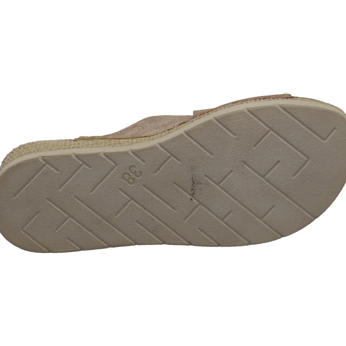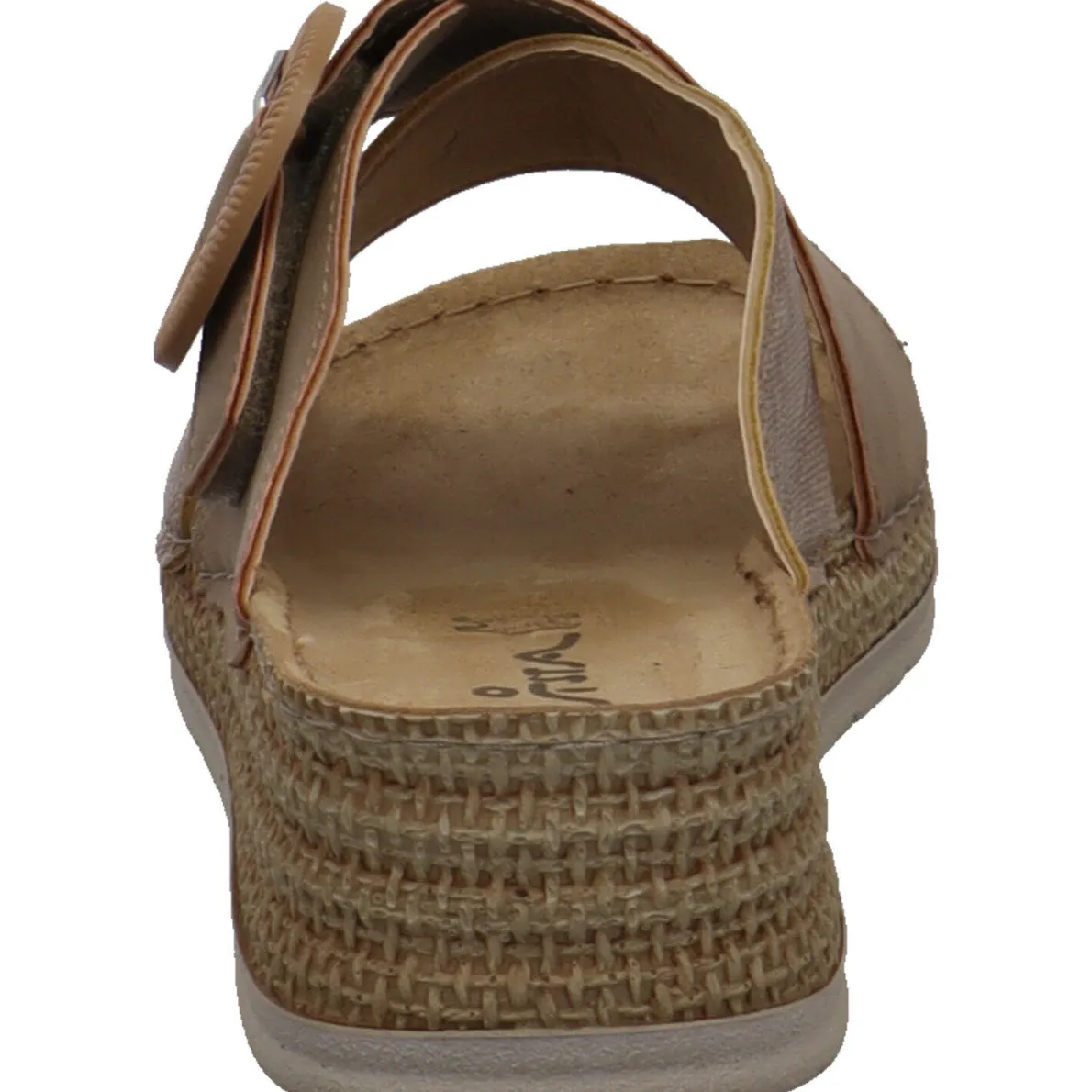 Die Echtleder Innensohle ist angenehm weich und der bequeme Keilabsatz in Bast Optik, zaubert lange Beine.
