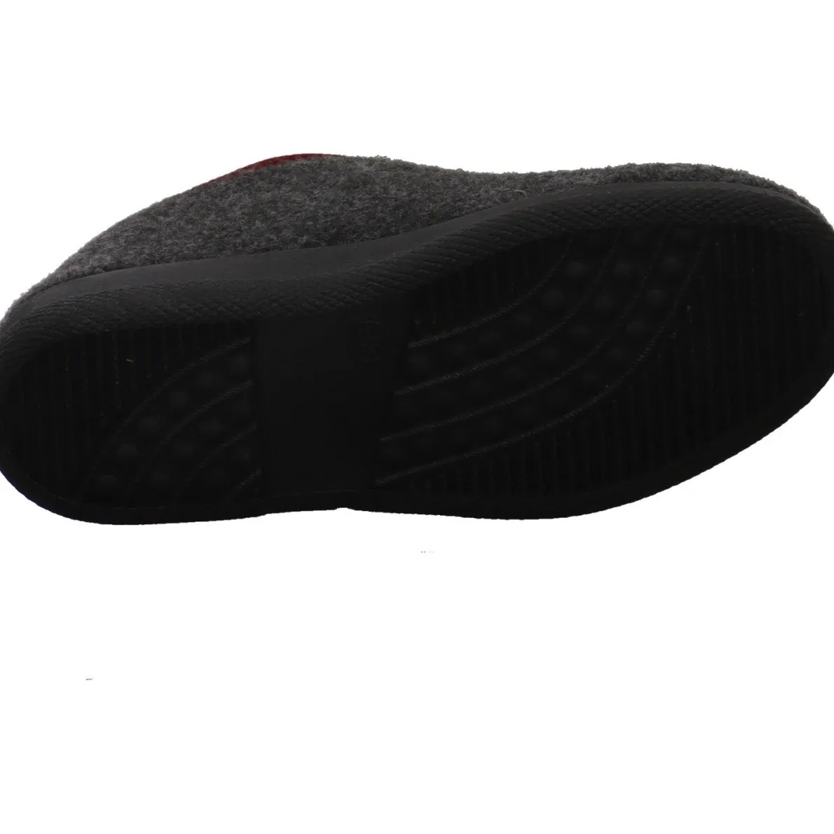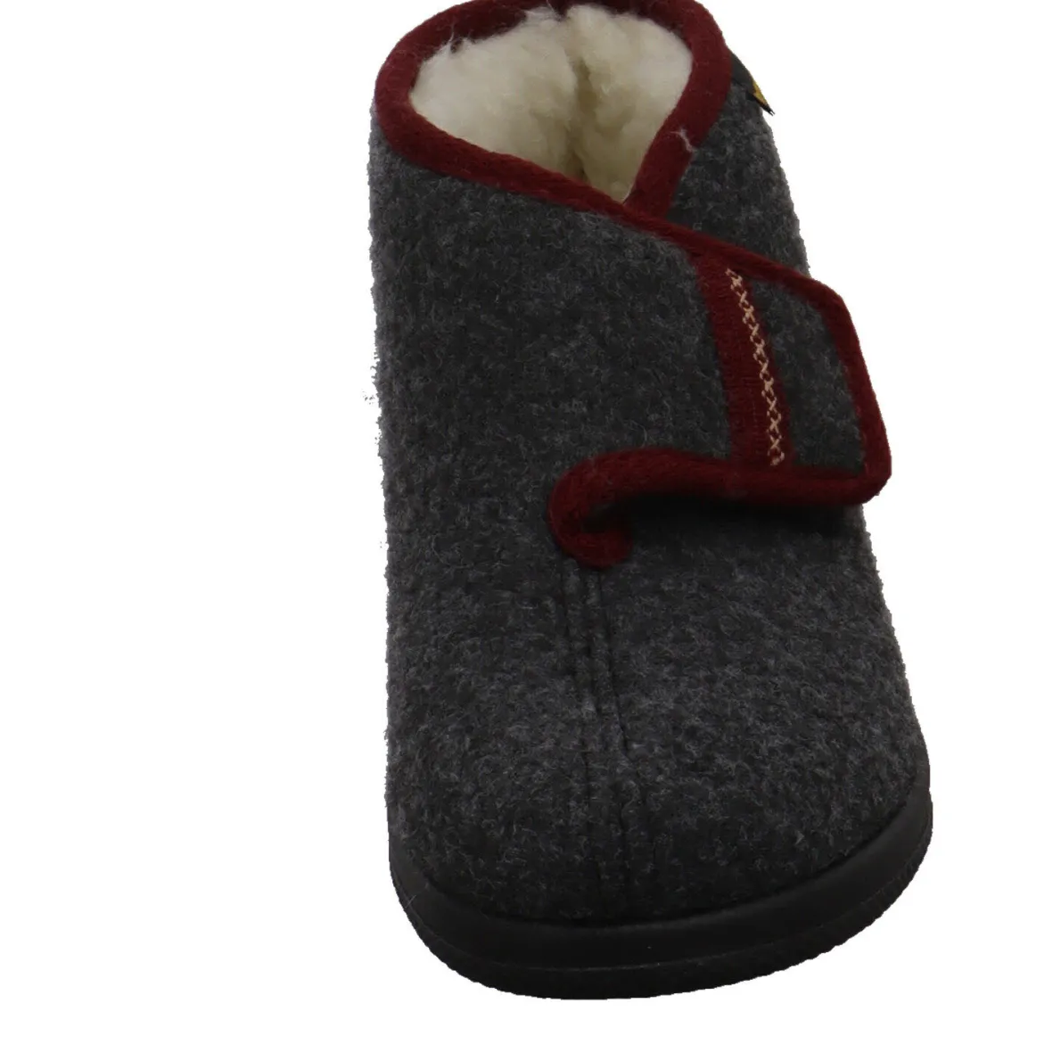 Ein absoluter Bequemschuh ist dieser klassische Damen Hausschuh von Intermax. Das strapazierfähige Obermaterial aus Filz in Grau ist mit einer schönen Zierkante in Rot versehen.