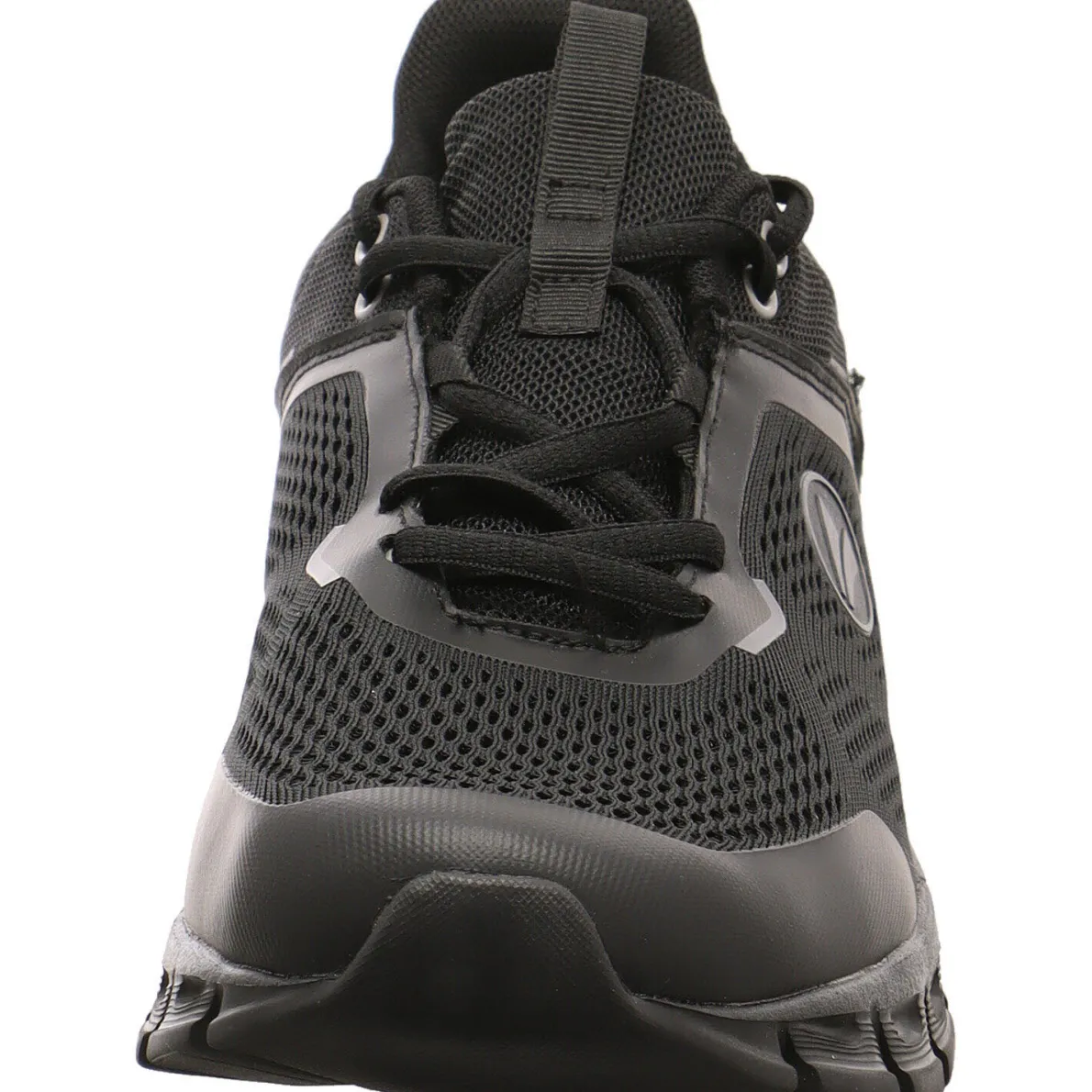 Das Obermaterial ist aus einem Mix aus Air Flow Mesh Textil in Schwarz und stabilisierenden Synthetik Einsätzen. Air Flow Mesh ist ein offenporiges Meshmaterial, das für sehr gute Atmungsaktivität sorgt. Durch die Schnürung ist ein leichter Einstieg möglich und der Schuh lässt sich optimal an den Fuß anpassen. Die ShockAbsorb EVA-Zwischensohle sorgt für optimale Energierückgewinnung bei jedem Schritt. Zudem hält die Fast Dry Lining Technologie den Fuß bei jeder Anstrengung trocken. Das Material ist schnelltrocknend und nimmt Schweiß effektiv auf und transportiert diesen weg von der Haut.