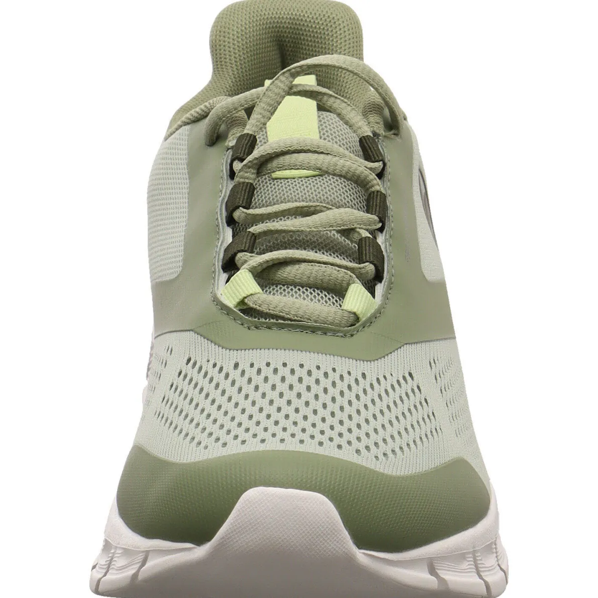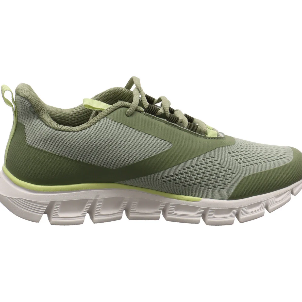 Das Obermaterial ist aus einem Mix aus Air Flow Mesh Textil in Grün und stabilisierenden Synthetik Einsätzen. Air Flow Mesh ist ein offenporiges Meshmaterial, das für sehr gute Atmungsaktivität sorgt. Durch die Schnürung ist ein leichter Einstieg möglich und der Schuh lässt sich optimal an den Fuß anpassen. Die ShockAbsorb EVA-Zwischensohle sorgt für optimale Energierückgewinnung bei jedem Schritt. Zudem hält die Fast Dry Lining Technologie den Fuß bei jeder Anstrengung trocken. Das Material ist schnelltrocknend und nimmt Schweiß effektiv auf und transportiert diesen weg von der Haut.