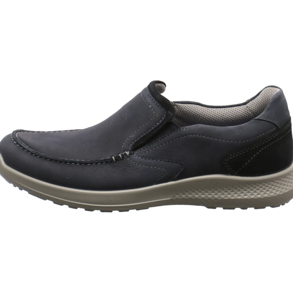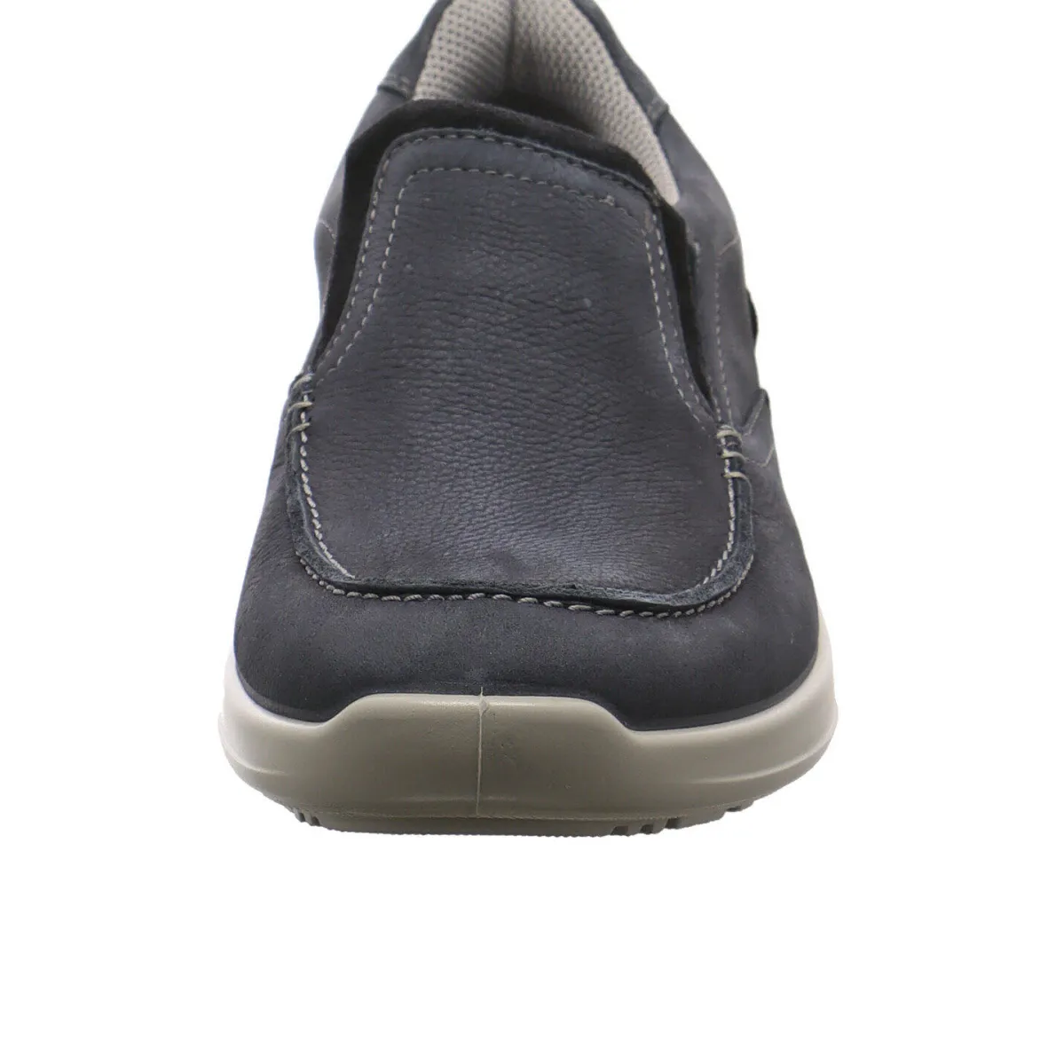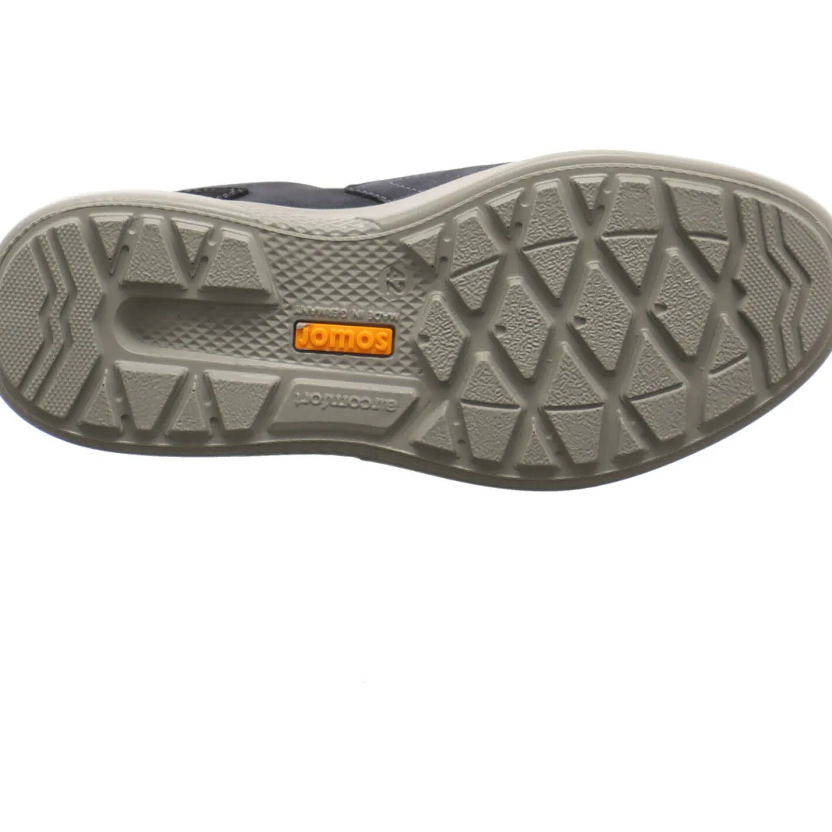 Der Campus von Jomos ist ein hochwertiger Herren Slipper aus vollnarbigem Echtleder in Blau. Sein sportliches Design verleihen ihm vor allem die tonalen Ziernähte. Die beidseits der Lasche platzierten Dehngummis ermöglichen einen bequemen Einstieg und die Ausstattung des Schuhs lässt keine Wünsche offen. Lasche und Schaftrand sind weich gepolstert, das Air-BlueCom-Wechselfußbett sorgt für angenehmes Tragegefühl und die aufgeraute und profilierte Aircomfortsohle gibt ausreichend Grip. Durch die Weite H bietet er den Füßen deutlich mehr Platz.