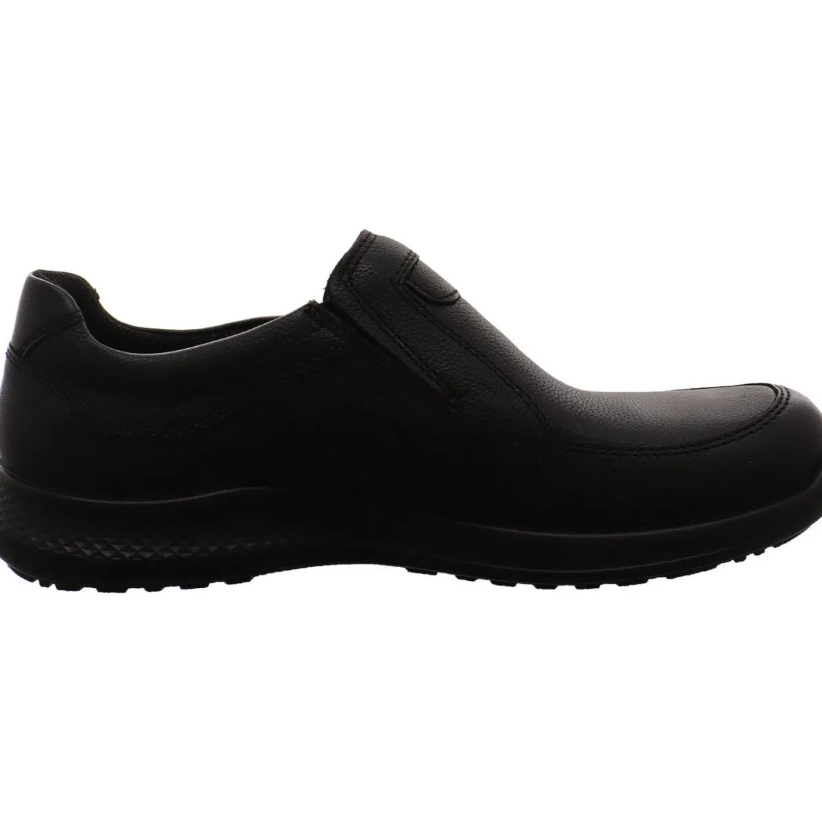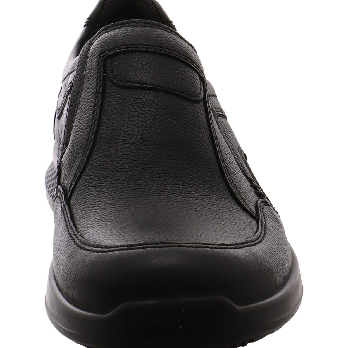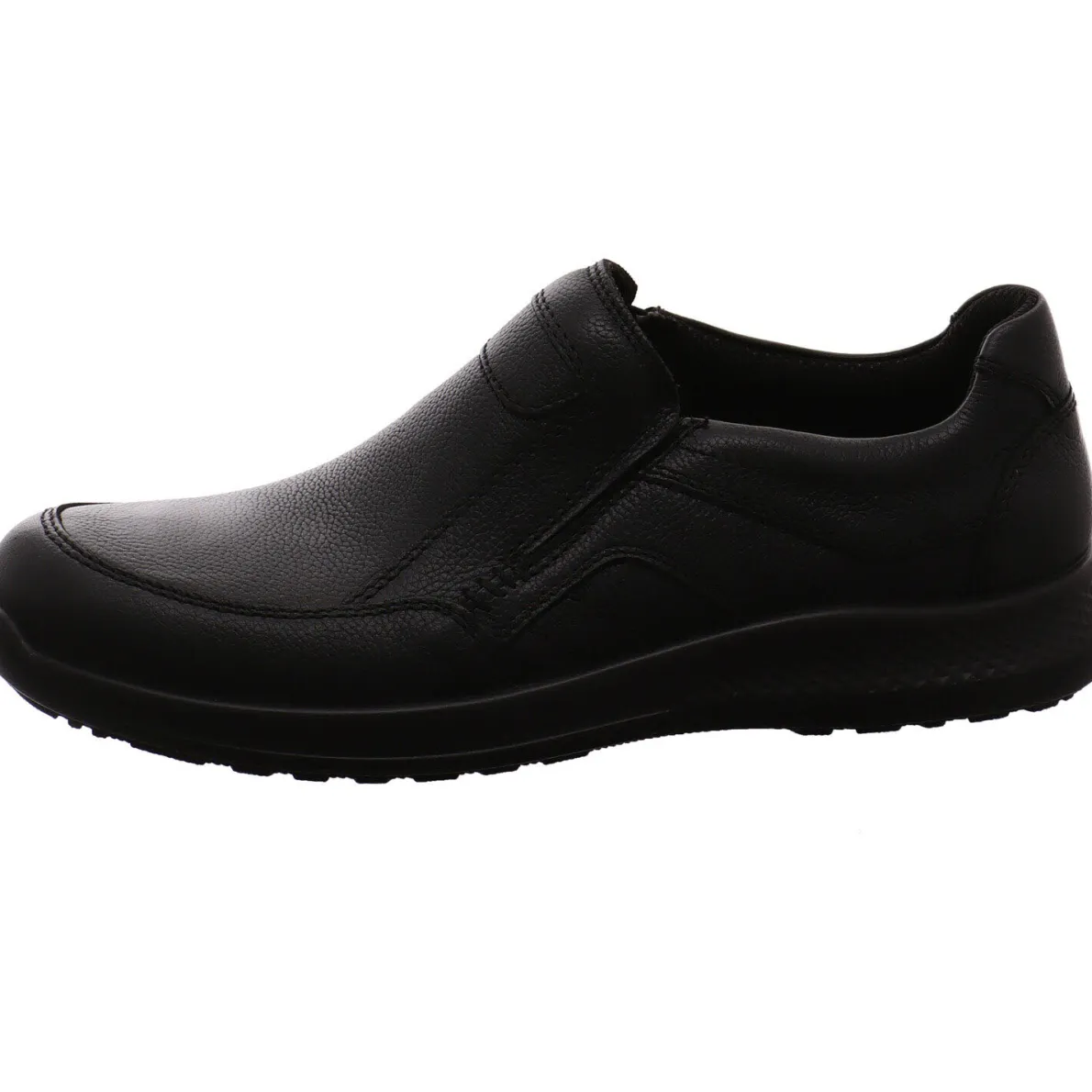 Der Campus von Jomos ist ein hochwertiger Herren-Slipper aus Echtleder in Schwarz. Sein sportliches Design verleihen ihm vor allem die tonalen Ziernähte. Die beidseits der Lasche platzierten Dehngummis ermöglichen einen bequemen Einstieg und die Ausstattung des Schuhs lässt keine Wünsche offen. Lasche und Schaftrand sind weich gepolstert, das Air-BlueCom-Wechselfußbett sorgt für angenehmes Tragegefühl und die aufgeraute und profilierte Aircomfortsohle gibt ausreichend Grip.