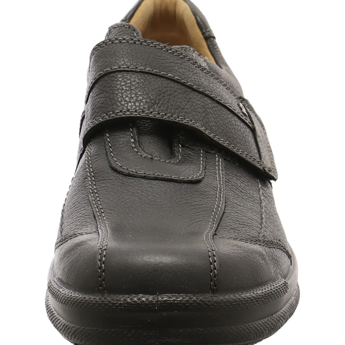 Die Man Life von Jomos sind hochwertige Herren Slipper aus Glattleder in schwarz. Ihr sportliches Design verleihen ihnen vor allem die farblich abgesetzten Ziernähte. Der Klettverschluss ermöglicht einen bequemen Einstieg und die Ausstattung des Man Life lässt keine Wünsche offen. Lasche und Schaftrand sind weich gepolstert, das Air-Com-Microvelours-Wechselfußbett sorgt für angenehmes Tragegefühl und die aufgeraute und profilierte Aircomfortsohle gibt ausreichend Grip.