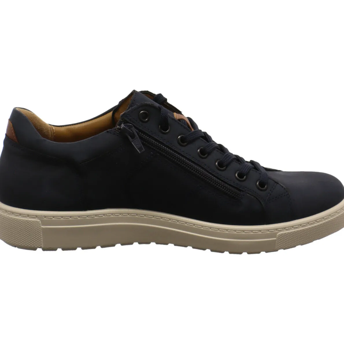 Dieser Schnürschuh von Jomos ist ein hochwertiger Herren Schnürschuh aus weichem Nubukleder in Blau mit Details in Braun. Sein sportliches Design verleihen ihm vor allem die tonalen Ziernähte. Die dezenten Schnürsenkel in dunklem Blau ermöglichen einen bequemen Einstieg und die Ausstattung des Schuhs lässt keine Wünsche offen. Lasche und Schaftrand sind weich gepolstert, das Air-Com Wechselfußbett sorgt für angenehmes Tragegefühl und die aufgeraute und profilierte Aircomfortsohle gibt ausreichend Grip. Durch die Weite H bietet er den Füßen deutlich mehr Platz.