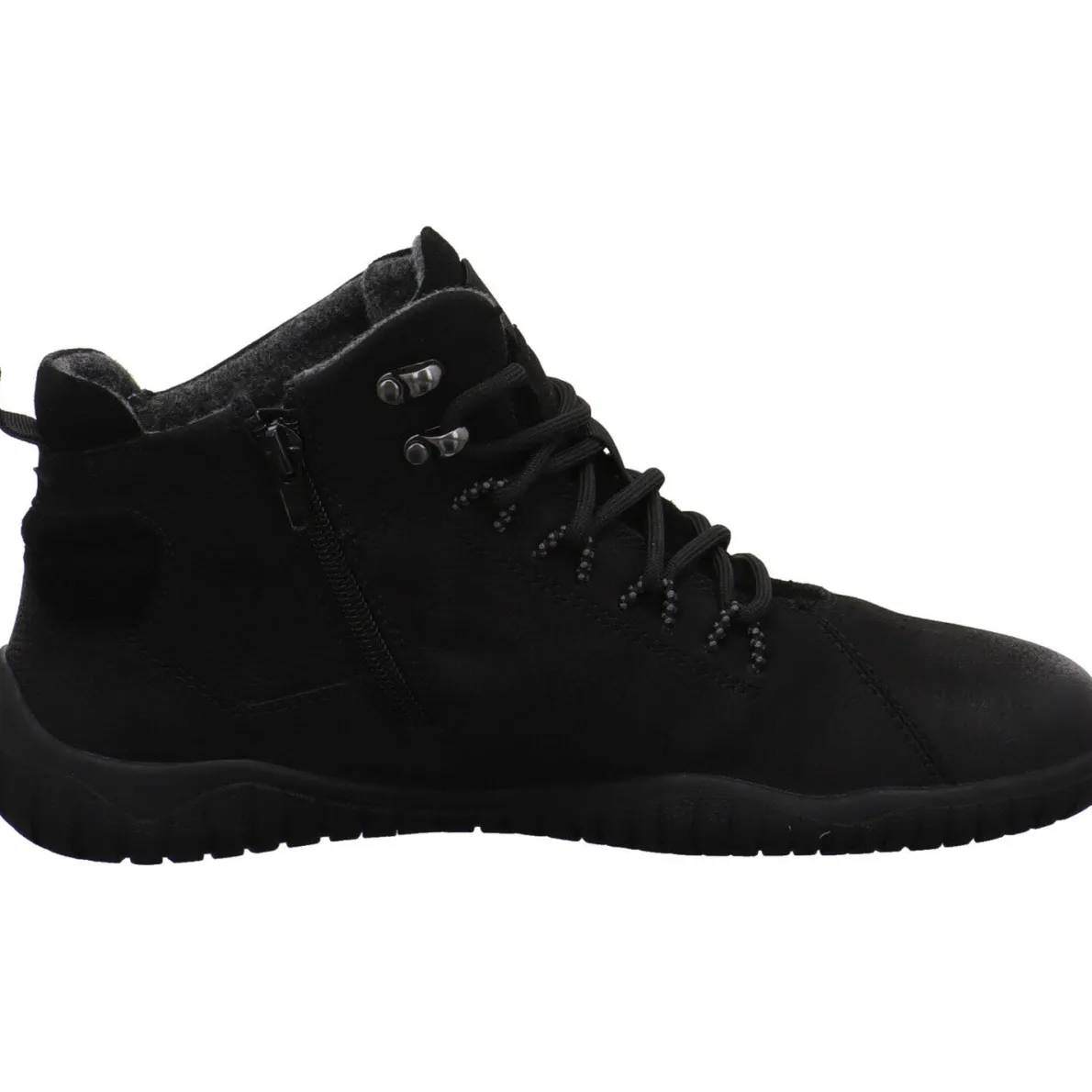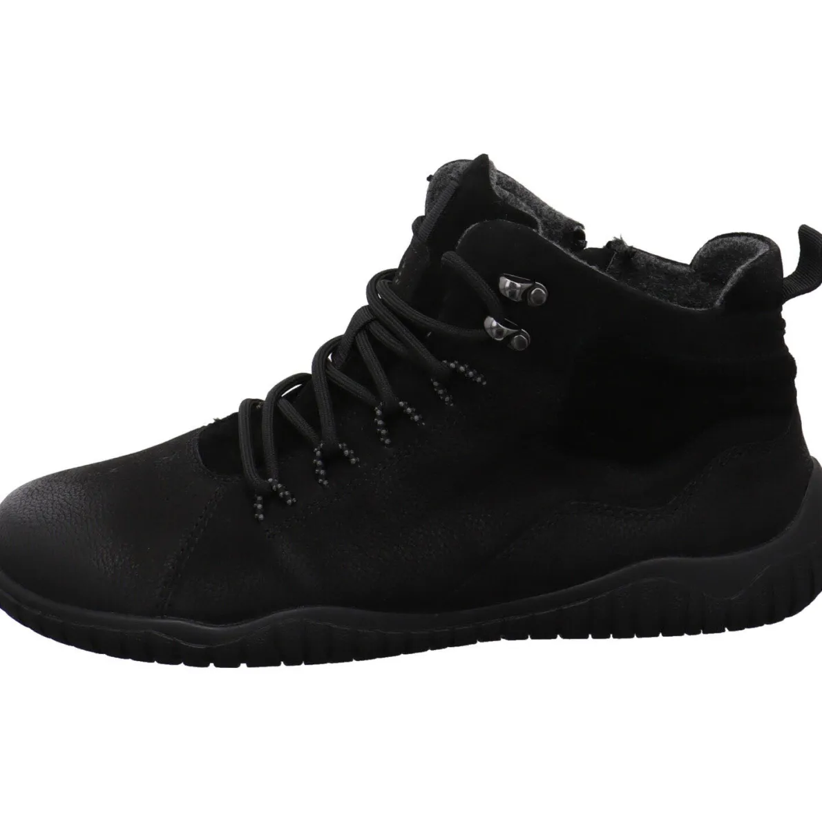 Er wurde aus hochwertigem Echtleder in Schwarz gefertigt. Durch den seitlichen Reißverschluss und die Lasche am Schaft ist der Einstieg besonders einfach. Mit der Schnürung kannst du die Schnürstiefelette genau auf deine Bedürfnisse anpassen. Mit seiner komfortablen Schnittführung besonders im Bereich der Zehen vermittelt der Schuh das angenehme Barfuß Feelingund hält durch das angeraute Innenfutter auch an kalten Tagen angenehm warm. Dazu ist er besonders leicht und sehr flexibel. Die Innensohle ist herausnehmbar.