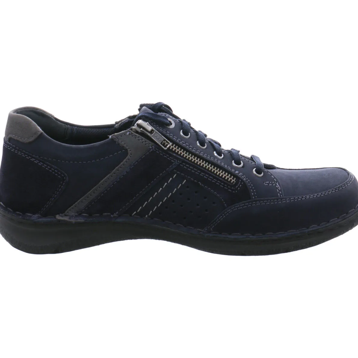 Der Anvers 87 von Josef Seibel ist ein Herren Schnürschuh aus feinem Glattleder in Blau. Der Nubukleder Einsatz an der Ferse und an den Seiten geben dem Schnürschuh einen sportlichen Look. Für absoluten Tragekomfort sorgen der leicht gepolsterte Schaftrand, die anpassungsfähige Innenausstattung aus Leder und das unterfütterte Wechselfußbett.