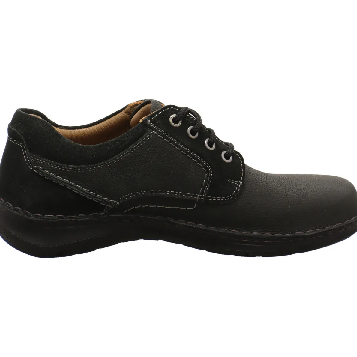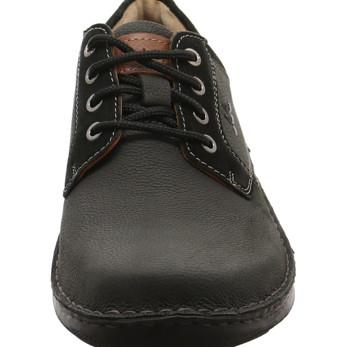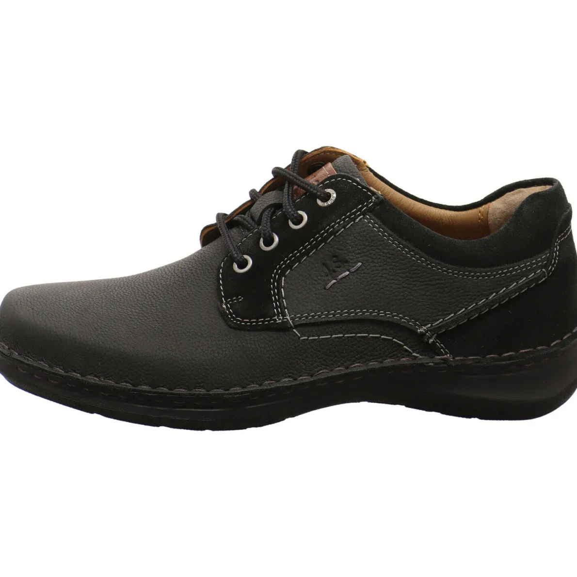Der New Anvers 06 von Josef Seibel ist ein Herren Schnürschuh aus genarbtem Echtleder in Schwarz. Die gezielt eingesetzten farblich abgehobenen Ziernähte und der Nubukleder Einsatz am Schaft und an der Ferse geben dem Schnürschuh einen sportlichen Look. Für absoluten Tragekomfort sorgen der leicht gepolsterte Schaftrand, die anpassungsfähige Innenausstattung aus Leder und das unterfütterte Wechselfußbett.