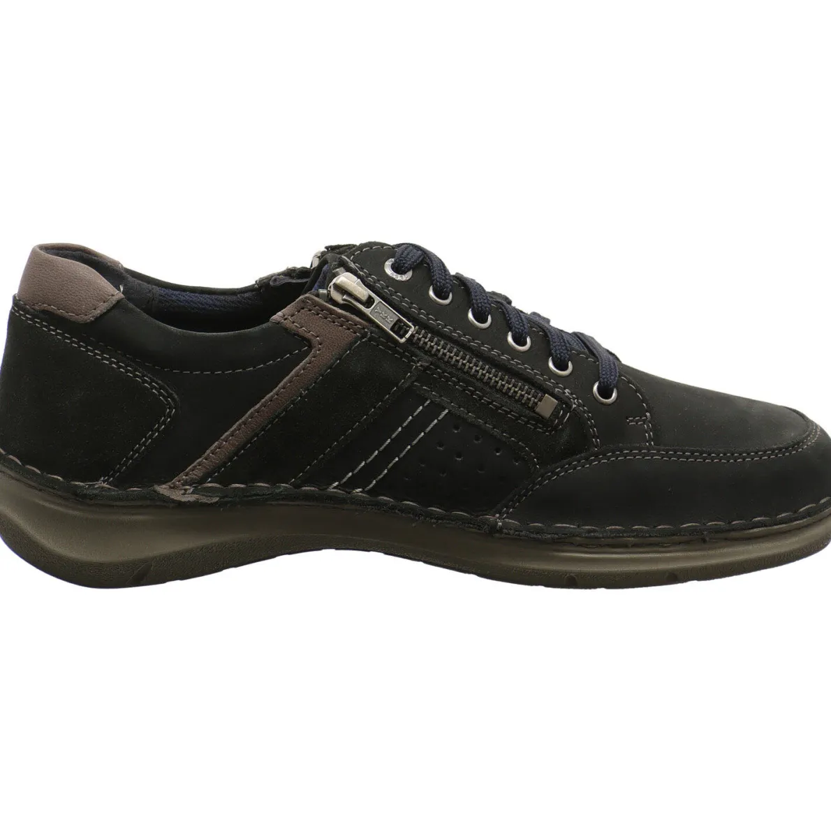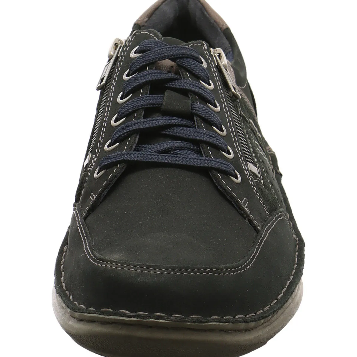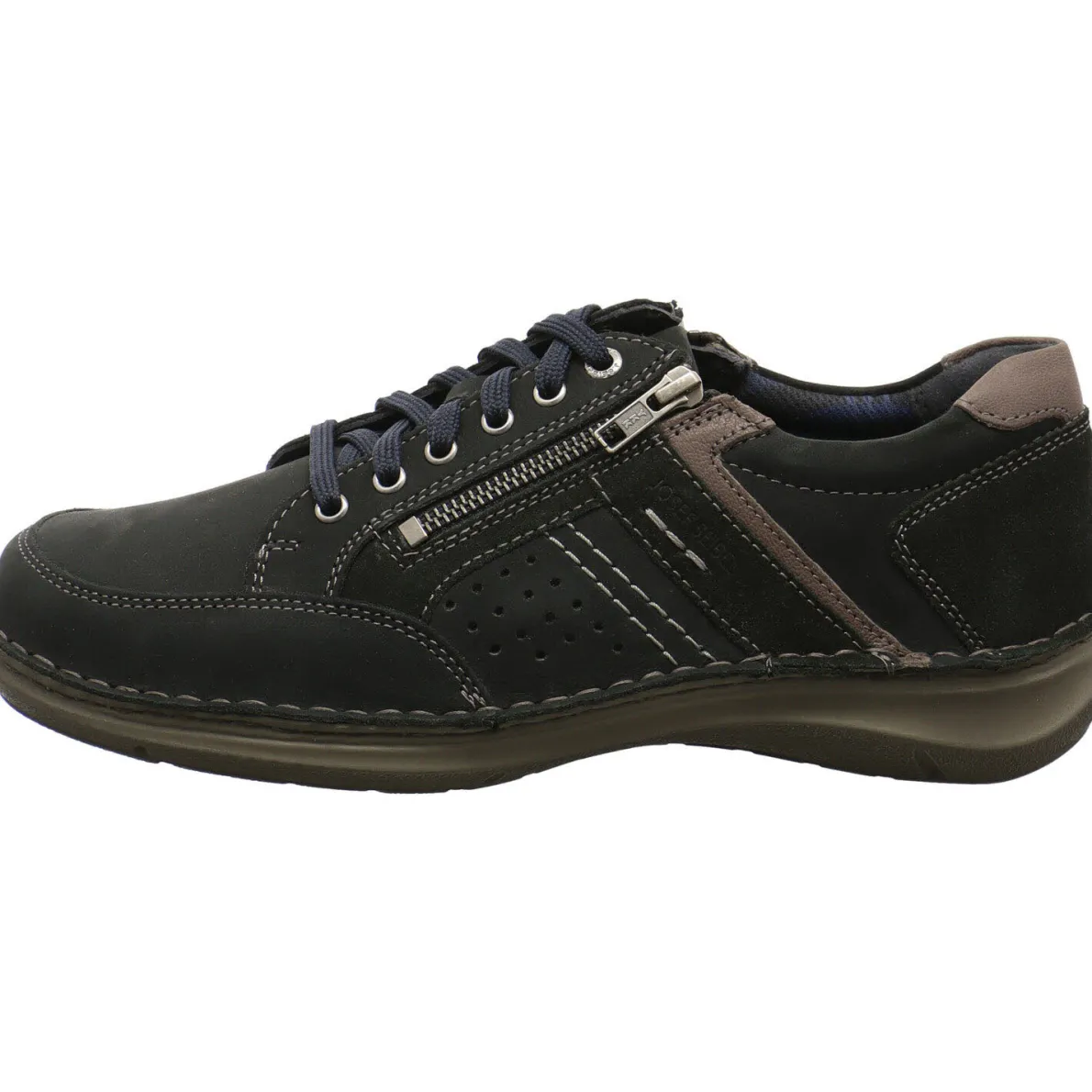 Der New Anvers 87 von Josef Seibel ist ein Herren Schnürschuh aus hochwertigem Nubukleder in Blau. Die Einsätze an der Ferse und an den Seiten geben dem Schnürschuh einen sportlichen Look. Für absoluten Tragekomfort sorgen der leicht gepolsterte Schaftrand, die anpassungsfähige Innenausstattung aus Leder und das unterfütterte Wechselfußbett.