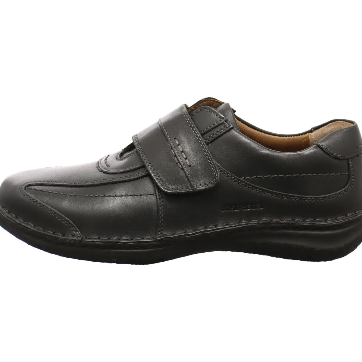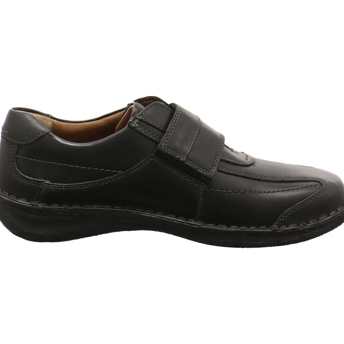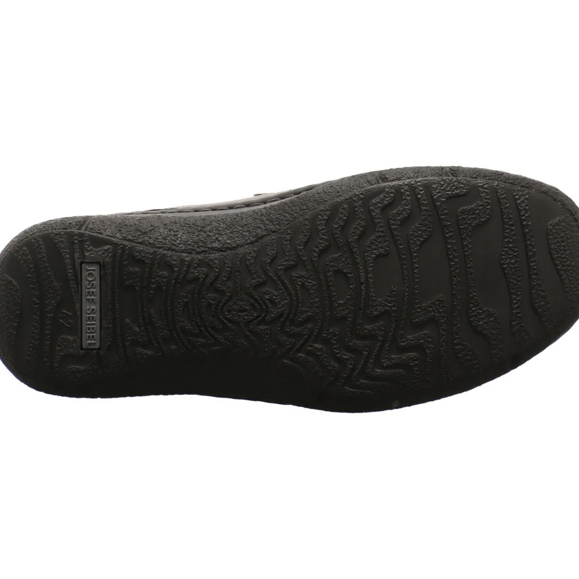 Der Alec von Josef Seibel ist ein sportiver Herren Slipper aus griffigem Echtleder in schwarz. Die gezielt eingesetzten farblich abgehobenen Ziernähte geben dem Freizeitschuh ein abwechlungsreiches Bild. Für absoluten Tragekomfort sorgen die Extra Weite K, der leicht gepolsterte Schaftrand, die anpassungsfähige Leder Innenausstattung und das unterfütterte Wechselfußbett.